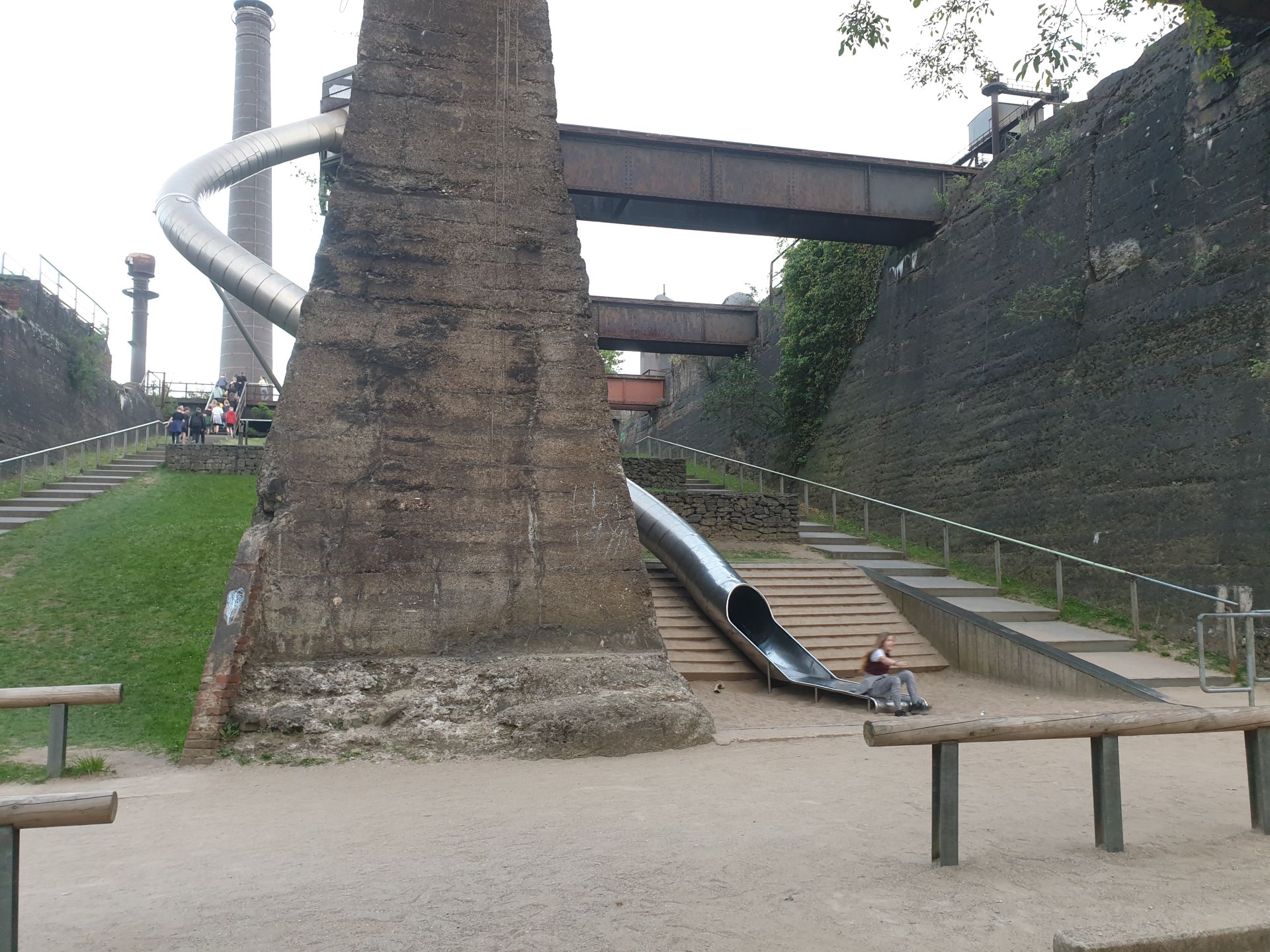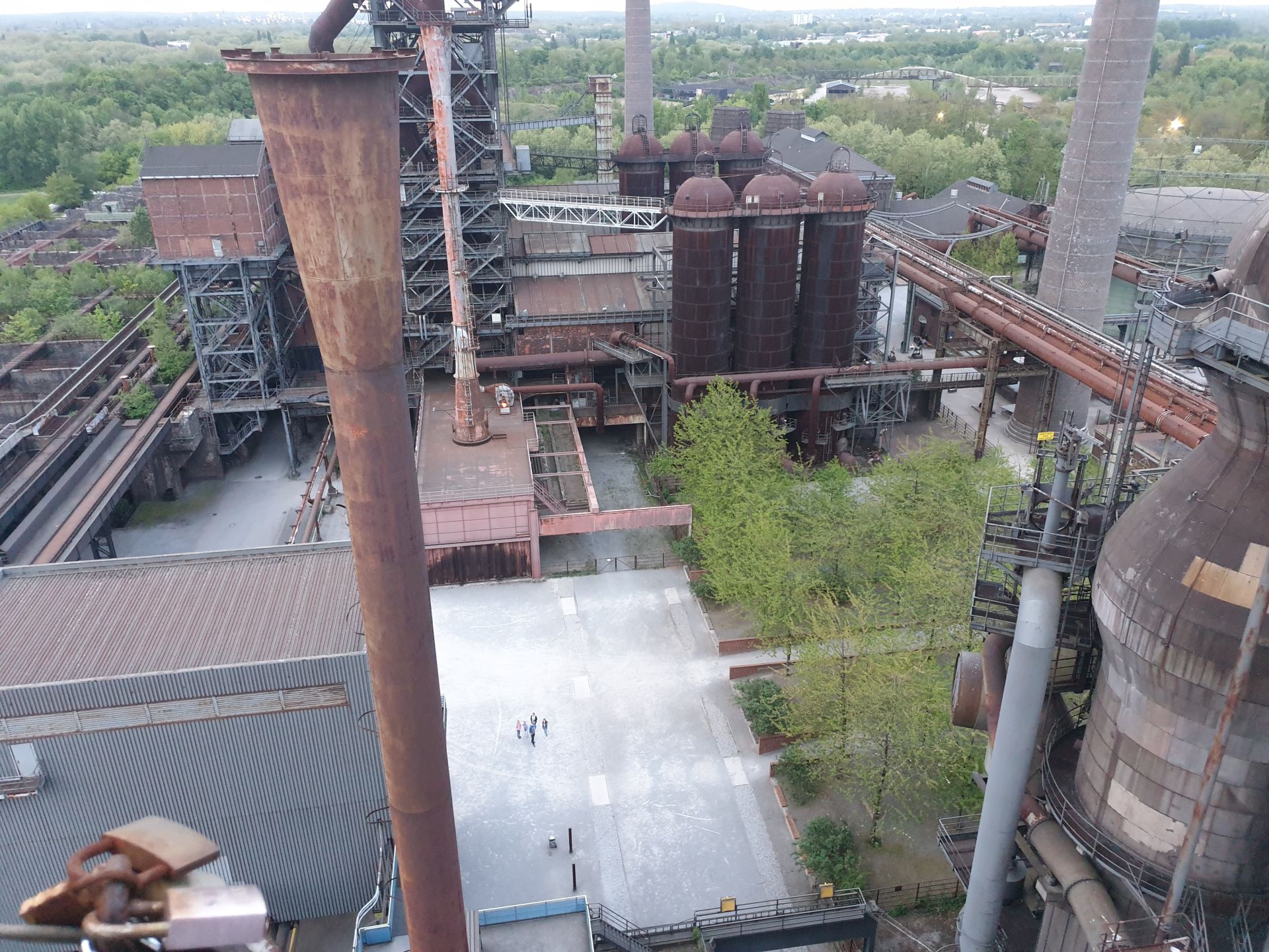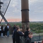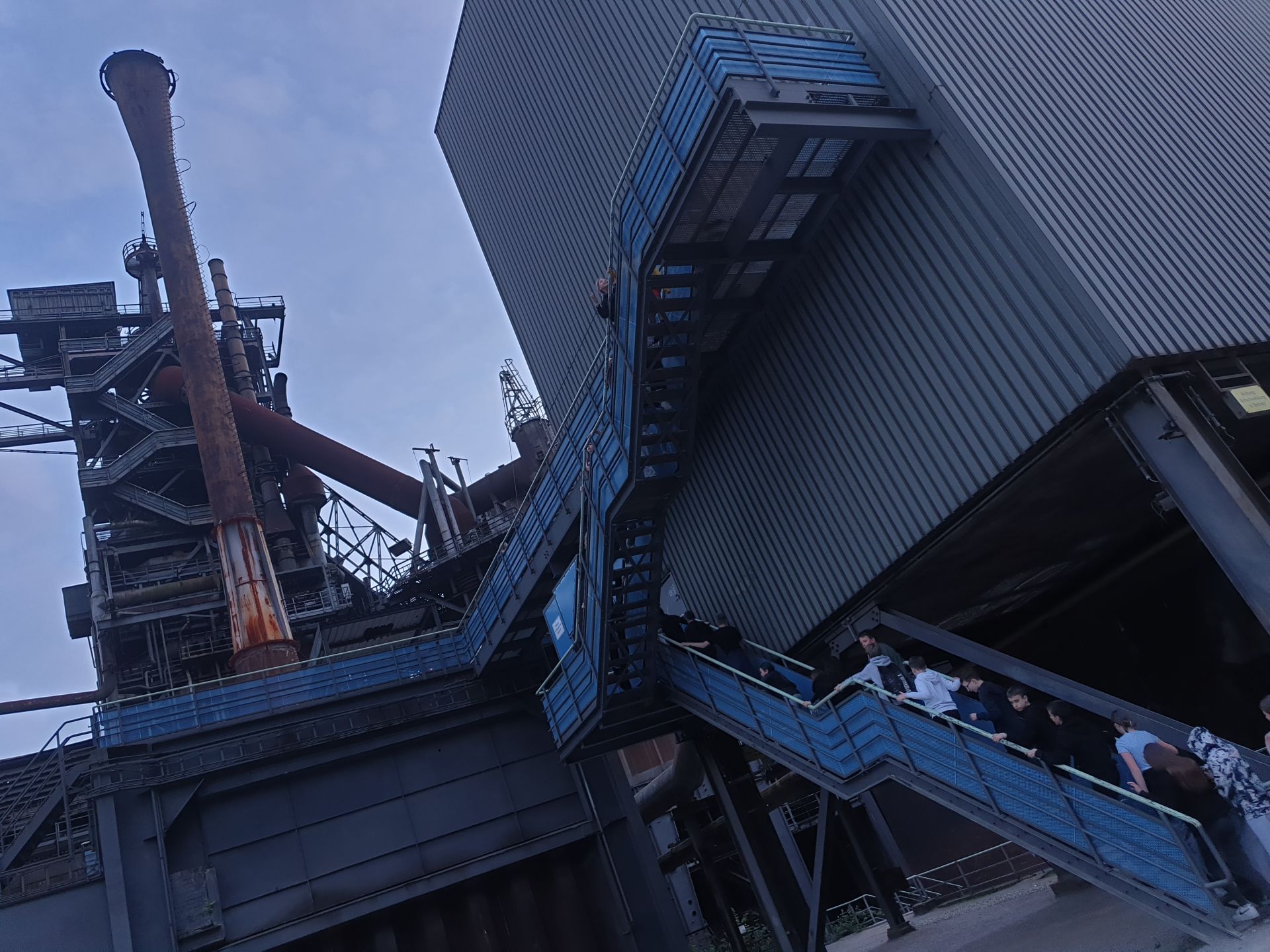 Am Mittwochmorgen ging es mit dem Bus um kurz nach 8 Uhr los. Nach der Ankunft in der Jugendherberge und der Erkundung des Geländes stand als Erstes eine Rallye in der Innenstadt auf dem Programm: In Kleingruppen haben wir mit einer (mehr oder weniger zuverlässigen) Karte Ziele gesucht und Aufgaben gelöst. Anschließend hatten wir Zeit, auf eigene Faust durchs Zentrum zu streifen und diverse Sorten Bubble Tea zu probieren. Damit war der tolle Tag aber noch lange nicht vorbei: Nach dem Abendessen kletterten wir in den Industrieanlagen und entdeckten dann ein weiteres Highlight: die gigantische Riesenröhrenrutsche, die durch die ehemaligen Erzbunker führt. Am Ende wartete aber noch eine Challenge der besonderen Art auf uns: Wir bestiegen einen Hochofen! Entlang alter Industrierohre führten uns viele Treppenstufen bis zum rund 70 m hohen Dach, wo wir den schönen Ausblick über Duisburg und den Landschaftspark genießen konnten.