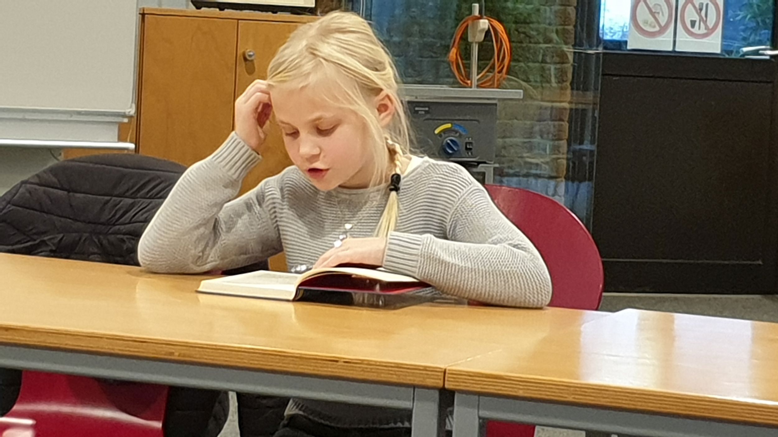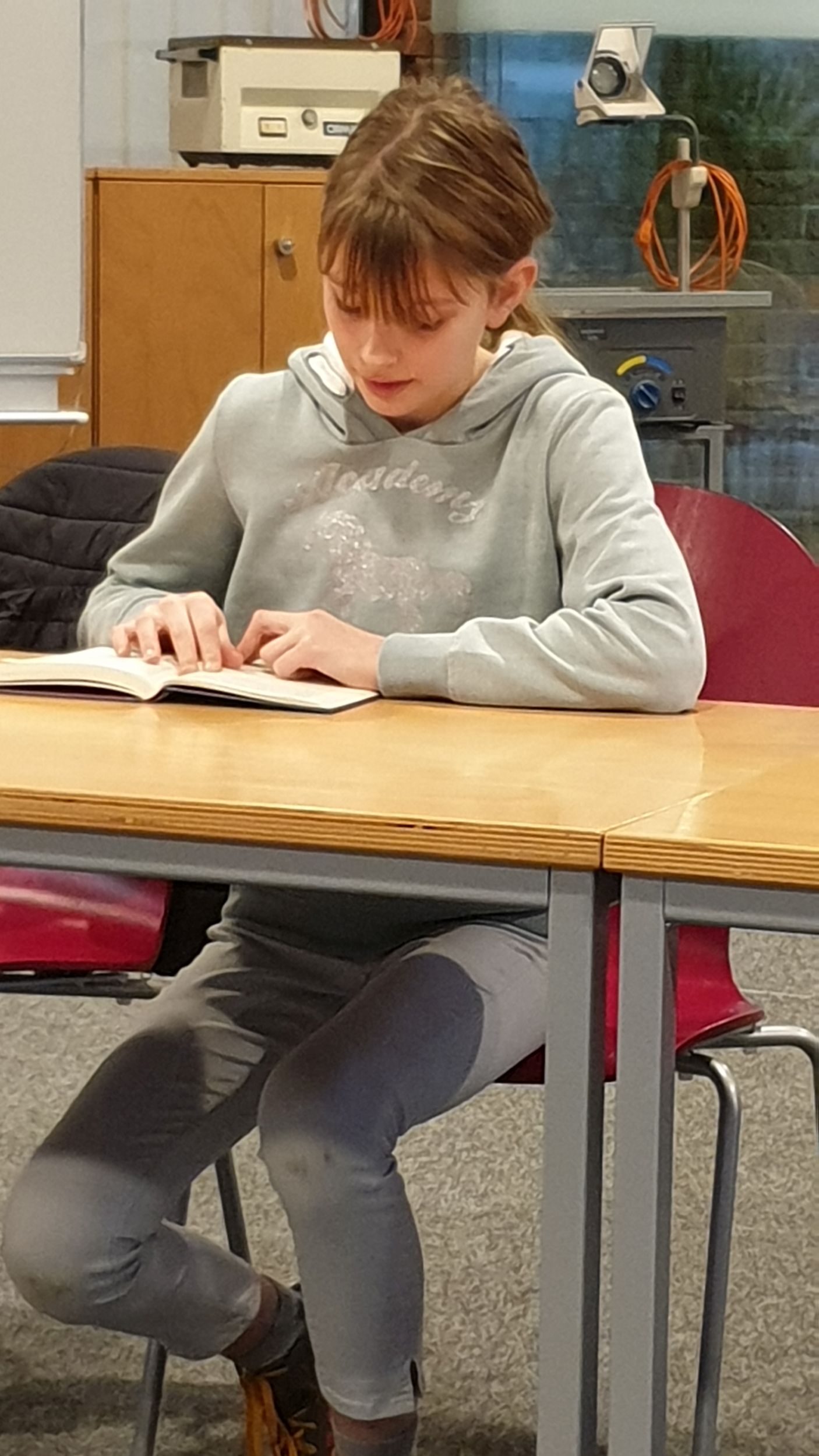 Zunächst stellten Jula Kliemann (Klasse 6A), Neal Mohme (Klasse 6B) und Lisa Uhlig (Klasse 6C) Textausschnitte aus von Ihnen gewählten Lieblingsbüchern vor. Neal präsentierte eine Stelle aus „Der Kleine Lord“ von Thomas Krüger. In der zweiten Runde wurde es schwieriger. Die drei widmeten sich einem Kapitel aus dem ihnen unbekannten Buch „Das schaurige Haus“ von Martina Wildner.