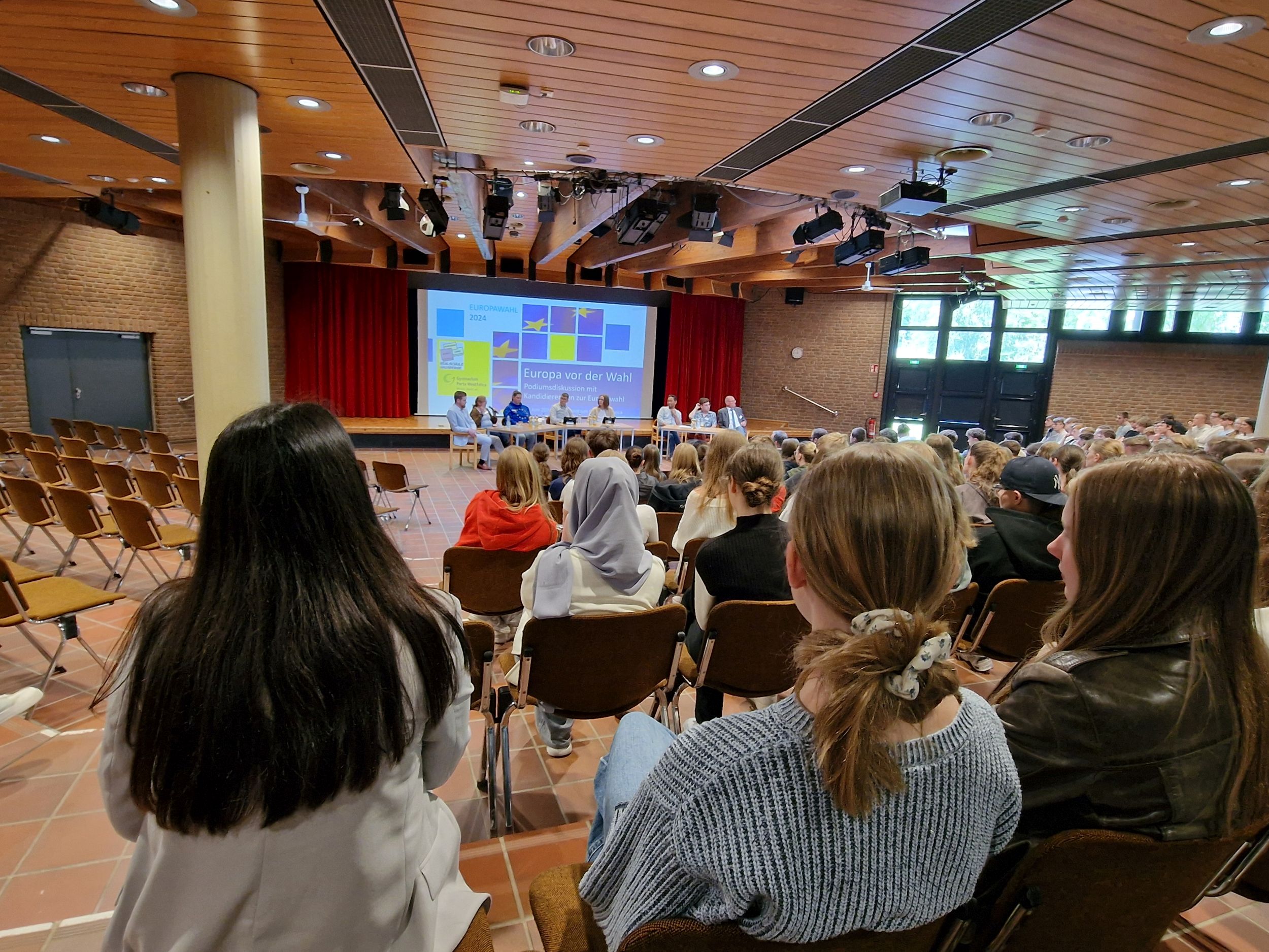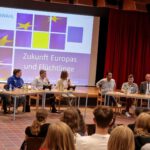 Die Diskussion begann mit zweiminütigen Eingangsstatements der Politikerinnen und Politiker, in denen sie ihre Visionen und Ziele für Europa darlegten. Dabei wurden verschiedene Themen angesprochen, die von großer Relevanz für die zukünftige Entwicklung der Europäischen Union sind. Dabei ging es unter anderem um den Klimaschutz oder die soziale Gerechtigkeit. Daran anschließend folgte eine angeregte Diskussion, in die sich auch die Schülerinnen und Schüler unserer Schule einschalteten und ihre Meinung äußerten.