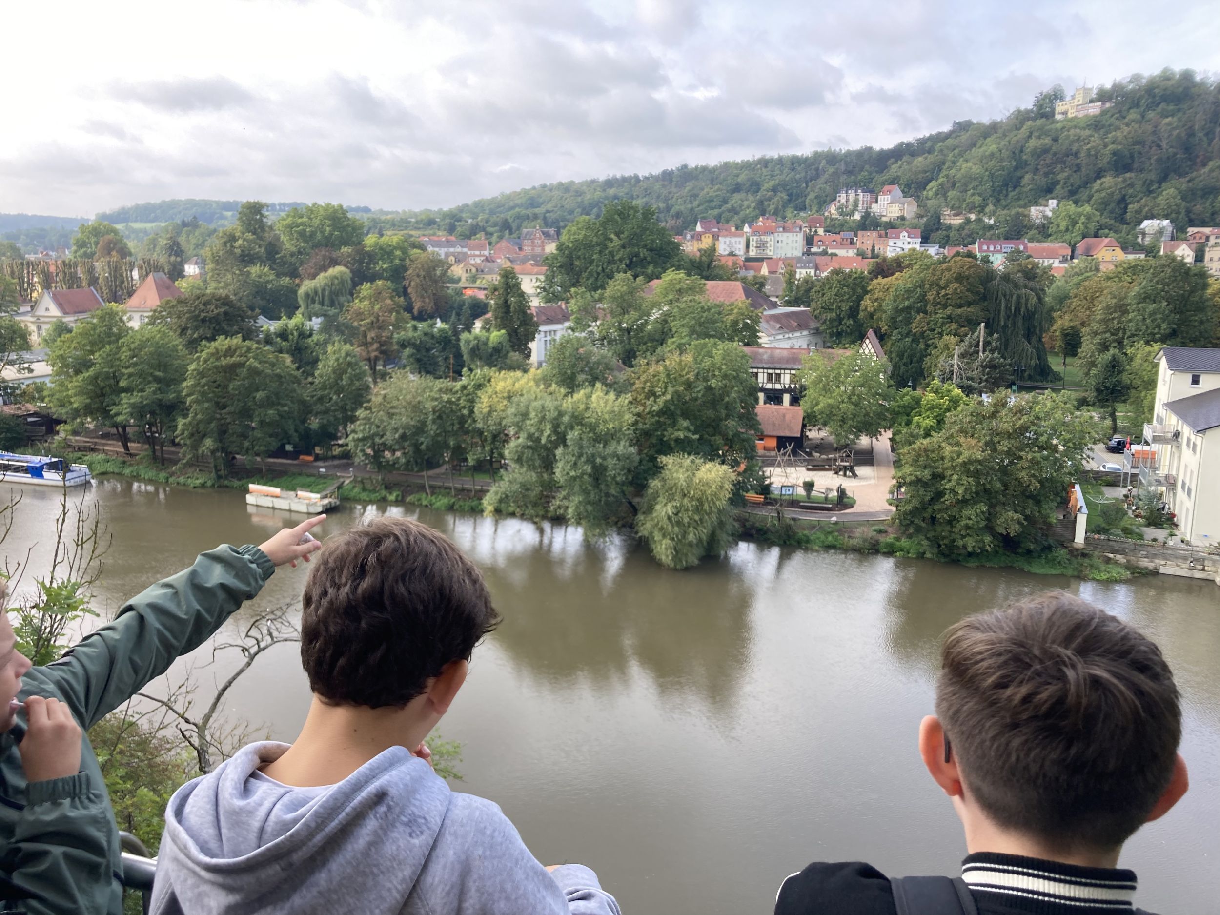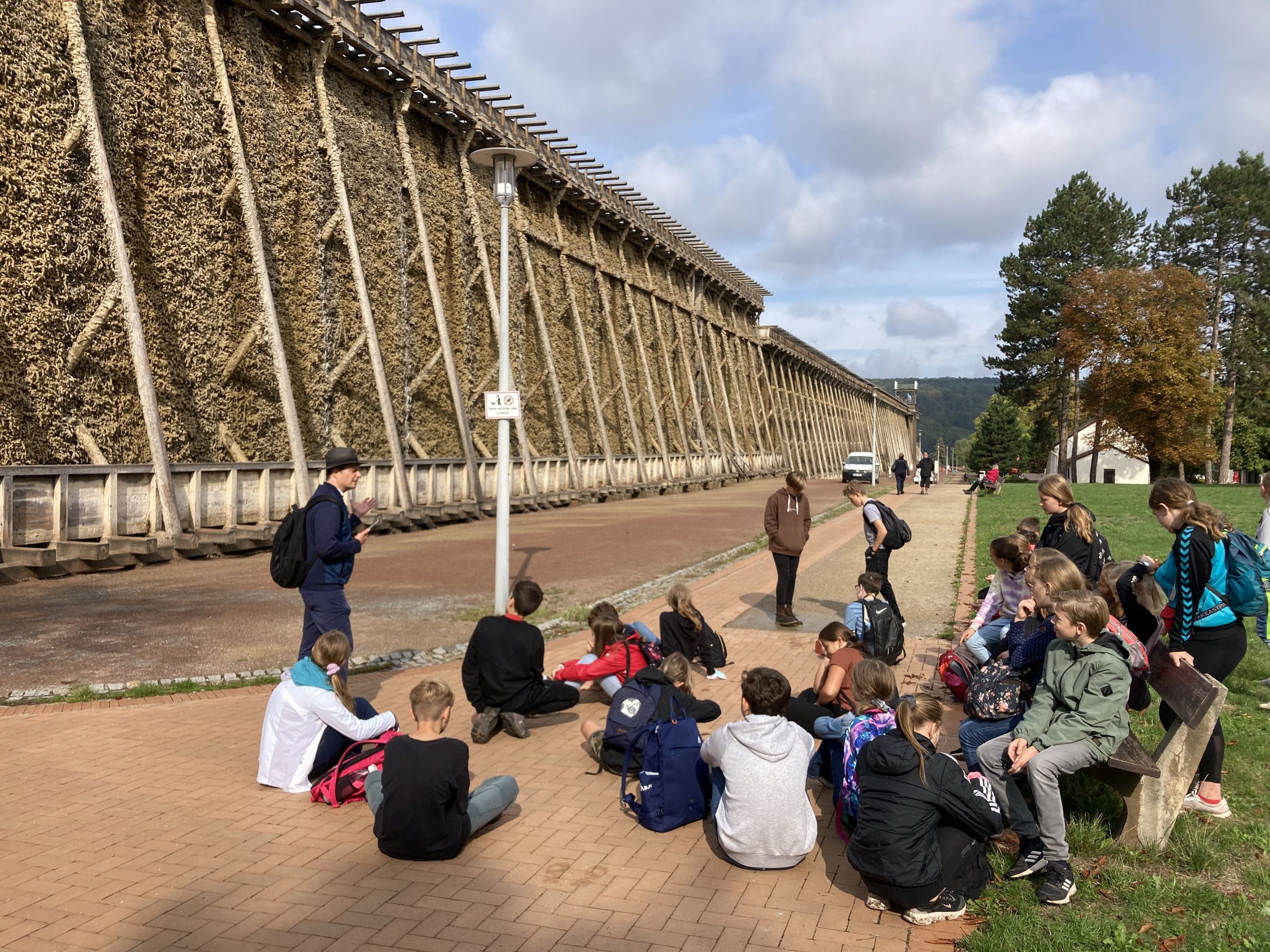 Die 6A unternahm an diesem Tag eine Wanderung zum Gradierwerk nach Bad Kösen. Wir starteten in unserer Unterkunft und liefen von dort aus dann Richtung Flemmingen. Von Flemmingen aus wanderten wir durch einen Wald (Saale-Ilm-Platten) und kamen dann in Bad Kösen raus. In Bad Kösen war ein sehr großes Gradierwerk und wir lernten, dass Bad Kösen ein Kurort ist. Nach einer kleinen Pause gingen wir zu einem Aussichtspunkt, von dem man einen sehr schönen Blick auf die Saale hatte. Hiernach gingen wir zurück und alle fanden, dass sich die Wanderung von insgesamt fast 12 km gelohnt hatte.