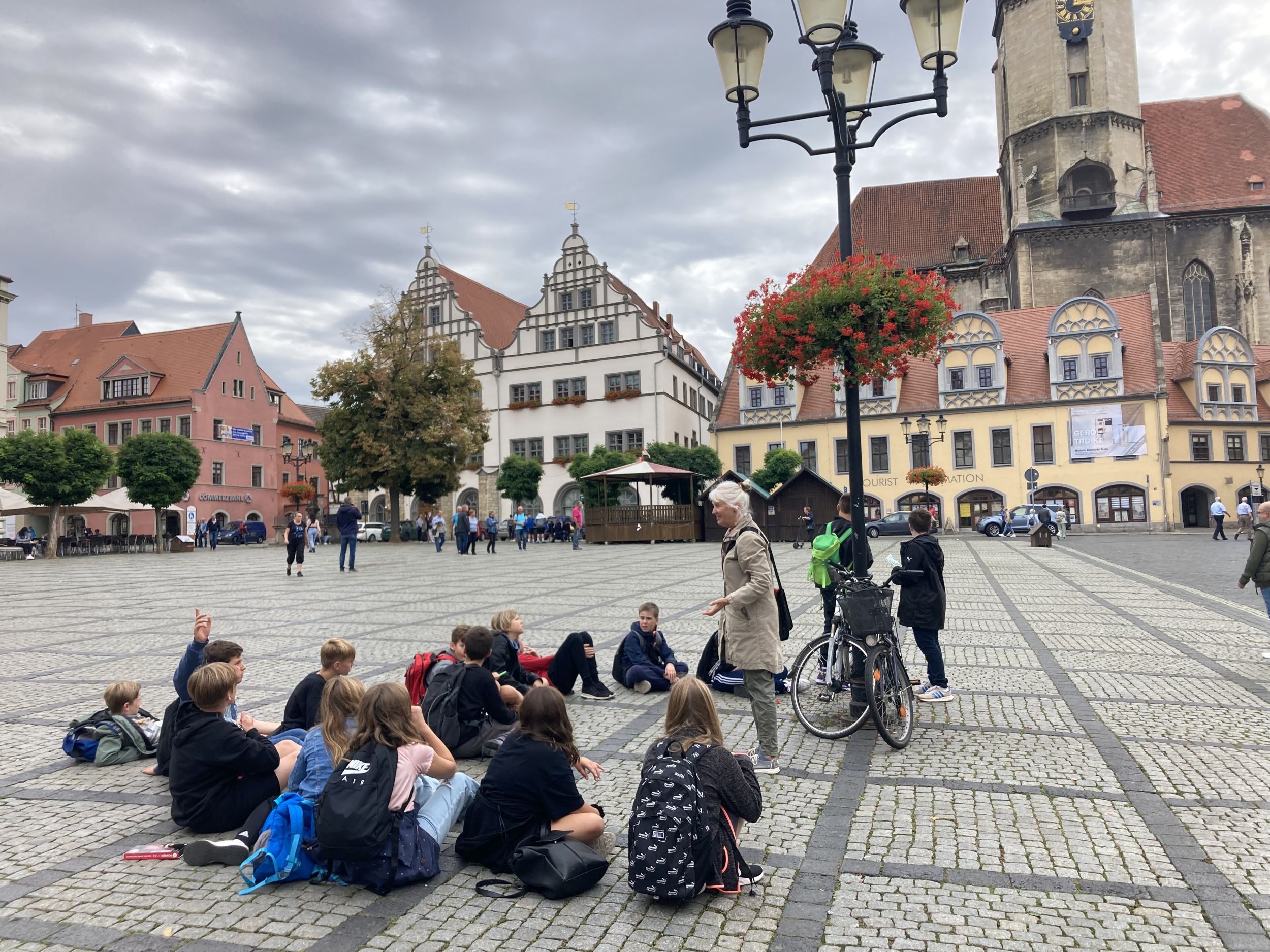 Am zweiten Tag fand für alle Klassen eine Dom- und Stadtführung statt. Wir wurden in zwei Gruppen eingeteilt und durch den Dom (UNESCO-Welterbe) und die Stadt geführt. Im Dom waren besonders der Keller (Krypta) und die große Halle (Kirchenschiff), wo gebetet wird, beeindruckend. Leider schafften wir es nicht, alles zu sehen. In der Stadt, die im Mittelalter gegründet wurde, besichtigten wir u. a. das Marientor, von welchem wir einen guten Blick über die Altstadt von Naumburg hatten.