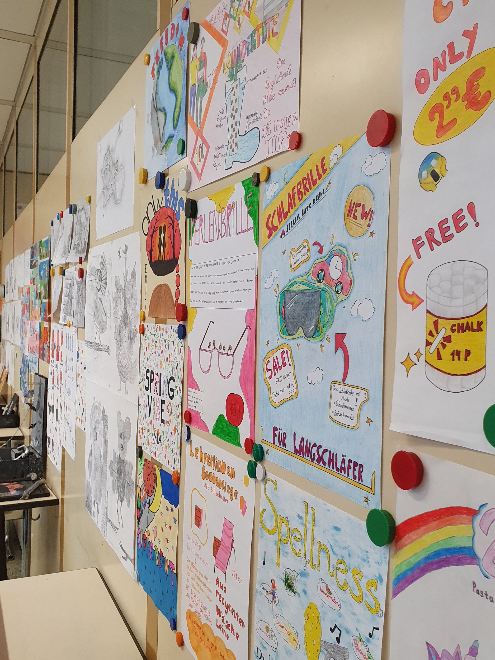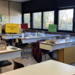 In den Fächern Biologie, Physik, Französisch, Latein und Mathematik konnten die Grundschüler*innen in zwei Etappen, jeweils 30 Minuten lang, am Schnupperunterricht teilnehmen. Begeistert stürmten sie im Anschluss aus den Unterrichtsräumen und berichteten über die neu gewonnenen Erkenntnisse. Ganz besonders beeindruckend war der Biologieunterricht, da dort der Hund Greta als lebendes Anschauungsobjekt zum Thema „Hunde“ der Star der Stunde war. Parallel zum Schnupperunterricht hatten die Gäste die Gelegenheit, an verschiedenen Experimenten, zahlreichen Mitmach-Aktionen und Ratespielen teilzunehmen. Das Angebot war vielseitig und kreativ: pH-Werte messen, grüne Flüssigkeit in blaue Flüssigkeit verwandeln, Tore schießen, Bälle werfen, auf einem Balken balancieren, einen Stopmotion-Film zum Thema Märchen erstellen, Quiz (Kahoot) zu musikalischen Fragen spielen, Geldscheine anzünden, Silber in Gold verwandeln, Staubexplosion beobachten, eine Bücherrallye durch die Fantasywelt durchlaufen, kreative Gedichte schreiben, einen selbst zusammengebauten Stirlingmotor beobachten, den Violinen- und Querflötenklängen aus der Musikpraxis lauschen, den sprechenden Hut aus Hogwarts nach der passenden Schule fragen, leckere Crêpes probieren und noch vieles mehr. Zahlreiche Schüler*innen unserer Schule unterstützen die Kleinen beim Basteln, Experimentieren und Malen, wofür wir uns an dieser Stelle ganz herzlich bedanken.