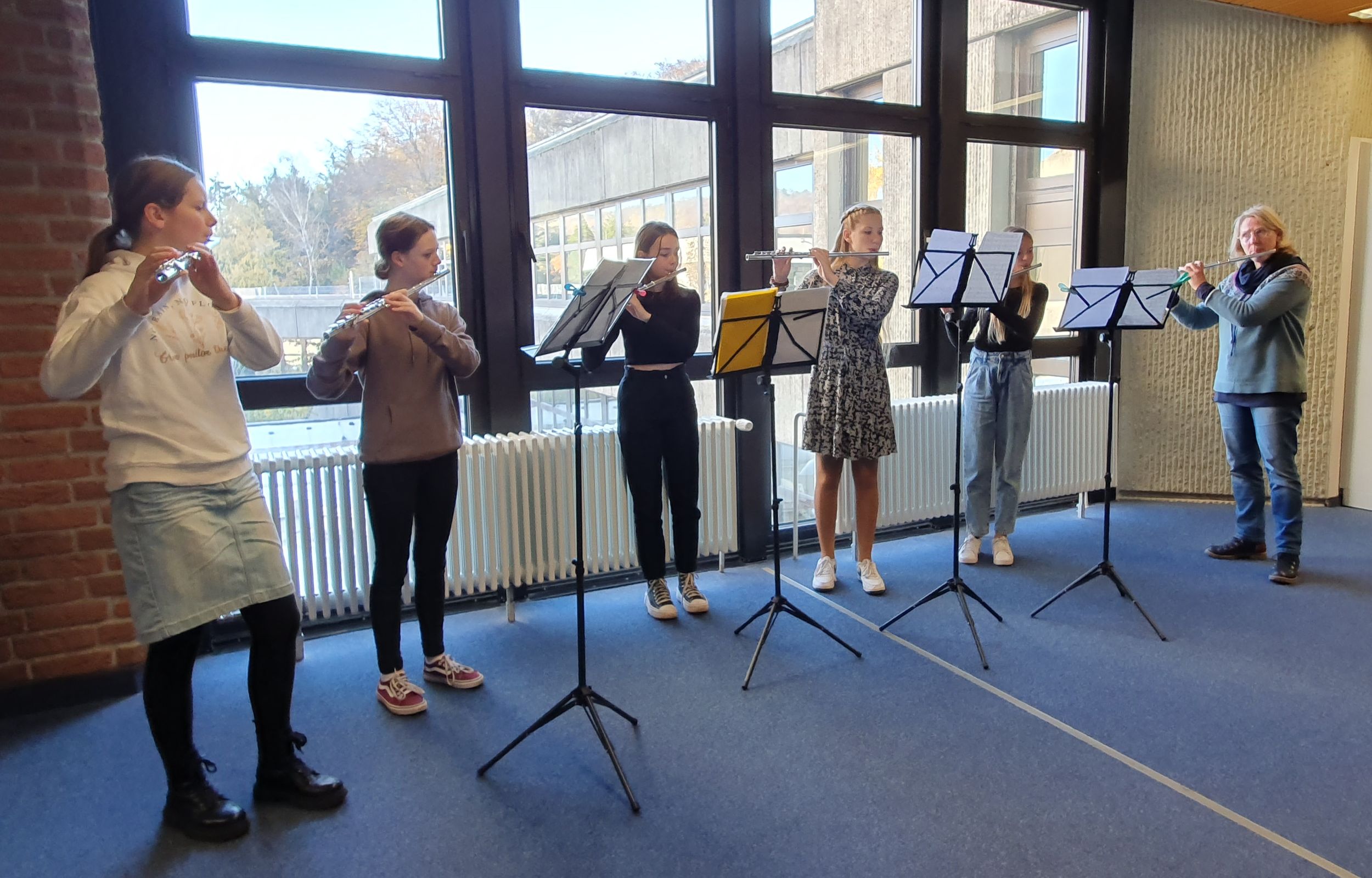 Gut gestimmt begann um 9:15 Uhr die allgemeine Begrüßungsveranstaltung mit dem Auftritt der AG „Fresh“ unter der Leitung von Jan Voß. Mit den Liedern „Fünf“ aus der Buchreihe „Alea Aquarius“ und „So wie die Wikinger“ ging es mit viel Energie los: Textzeilen, wie „Kommt schon Leute, los geht’s“ oder „Und in der Luft, da liegt Magie“ machten die Chorsänger*innen den Viertklässlerinnen und Viertklässlern Mut, sich auf die Entdeckungsreise einzulassen und versprachen magische Momente.