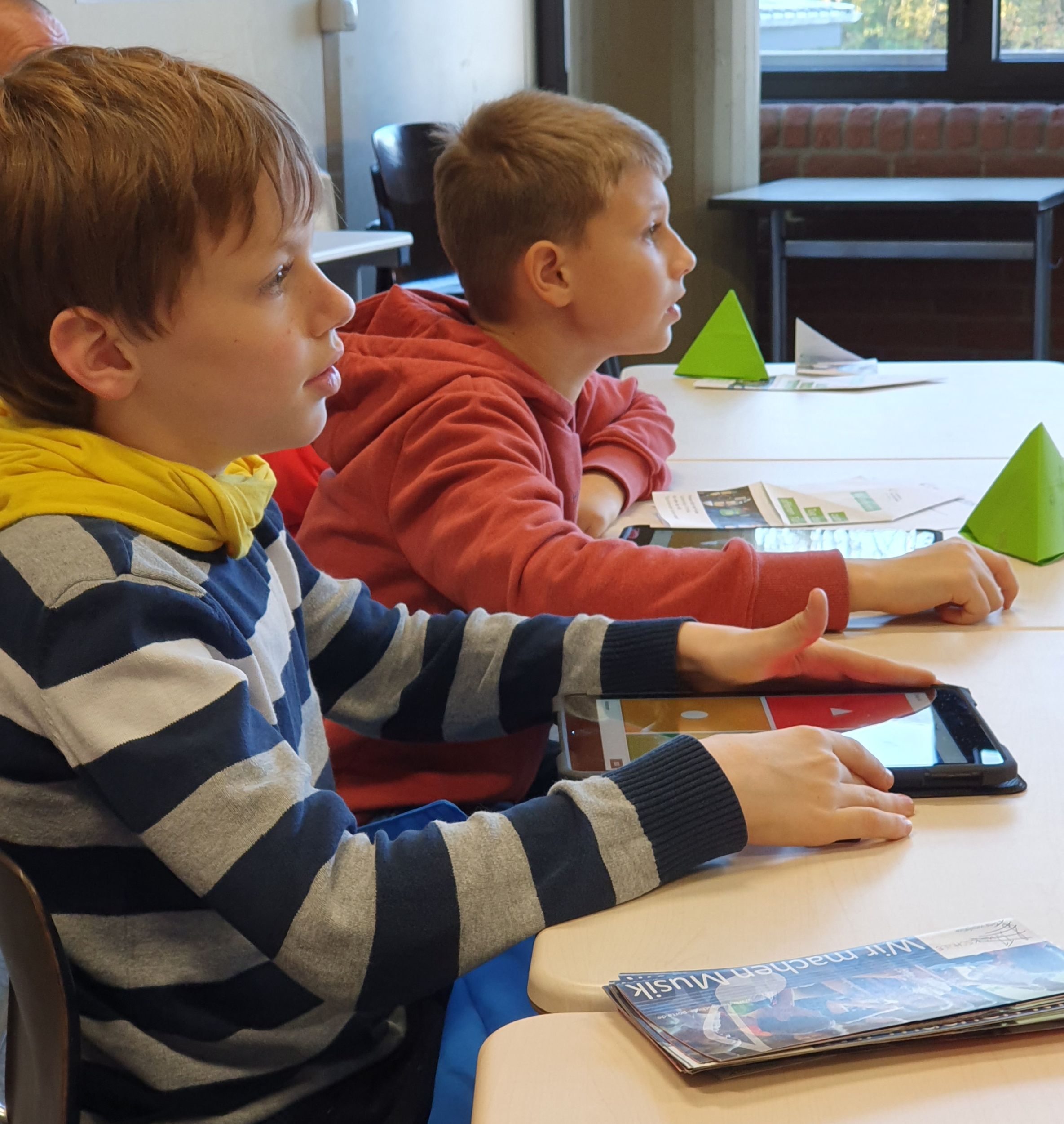 Danach ging es für alle Anwesenden aktiv weiter. Die Lotsen begleiteten die neugierigen Viertklässler*innen zu den Räumen der ersten Schnupperunterrichtsrunde. Ausgerüstet mit einem Flyer, welcher Angaben zu den wichtigsten Aktionen und Orten enthielt und gleichzeitig als Vorlage zum Sammeln von Mitmachstempeln galt, starteten die aufgeregten Gäste ihre Entdeckungstour. Es gab viel zu sehen und zu erleben.
