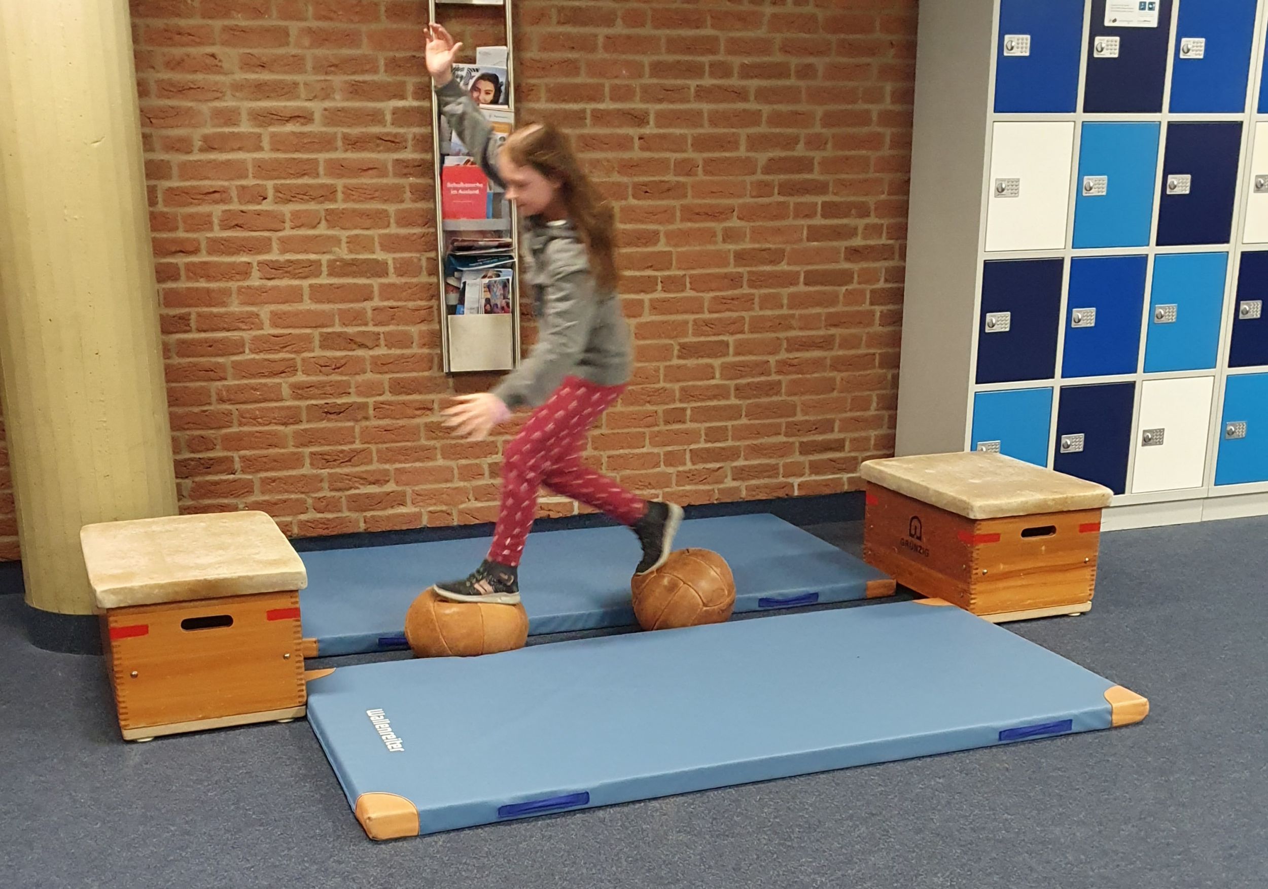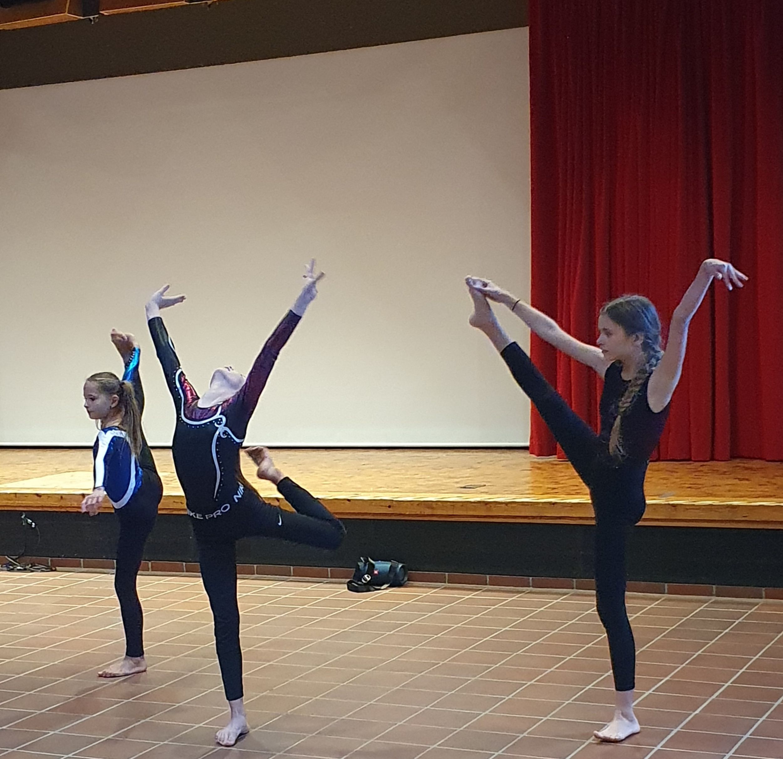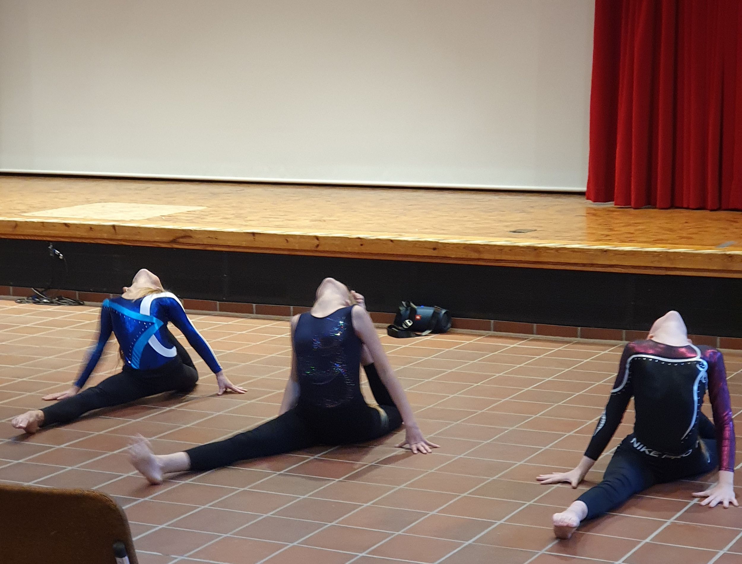 Im Anschluss begrüßte der stellvertretende Schulleiter Dirk Langer die Gäste und kündigte den sportlichen, turbulenten Auftritt von Emma, Anna, Liana, Enie, Rika, Mira, Cara und Lilly aus den Klassen 6A und 5A an, welche mit ihrer Jumpstyle-Choreographie auch die letzten noch schläfrigen Großen und Kleinen wachrüttelten und mit ihrer Kunstturnpräsentation beim Publikum für leuchtende Augen und Ausrufe der Begeisterung sorgten.