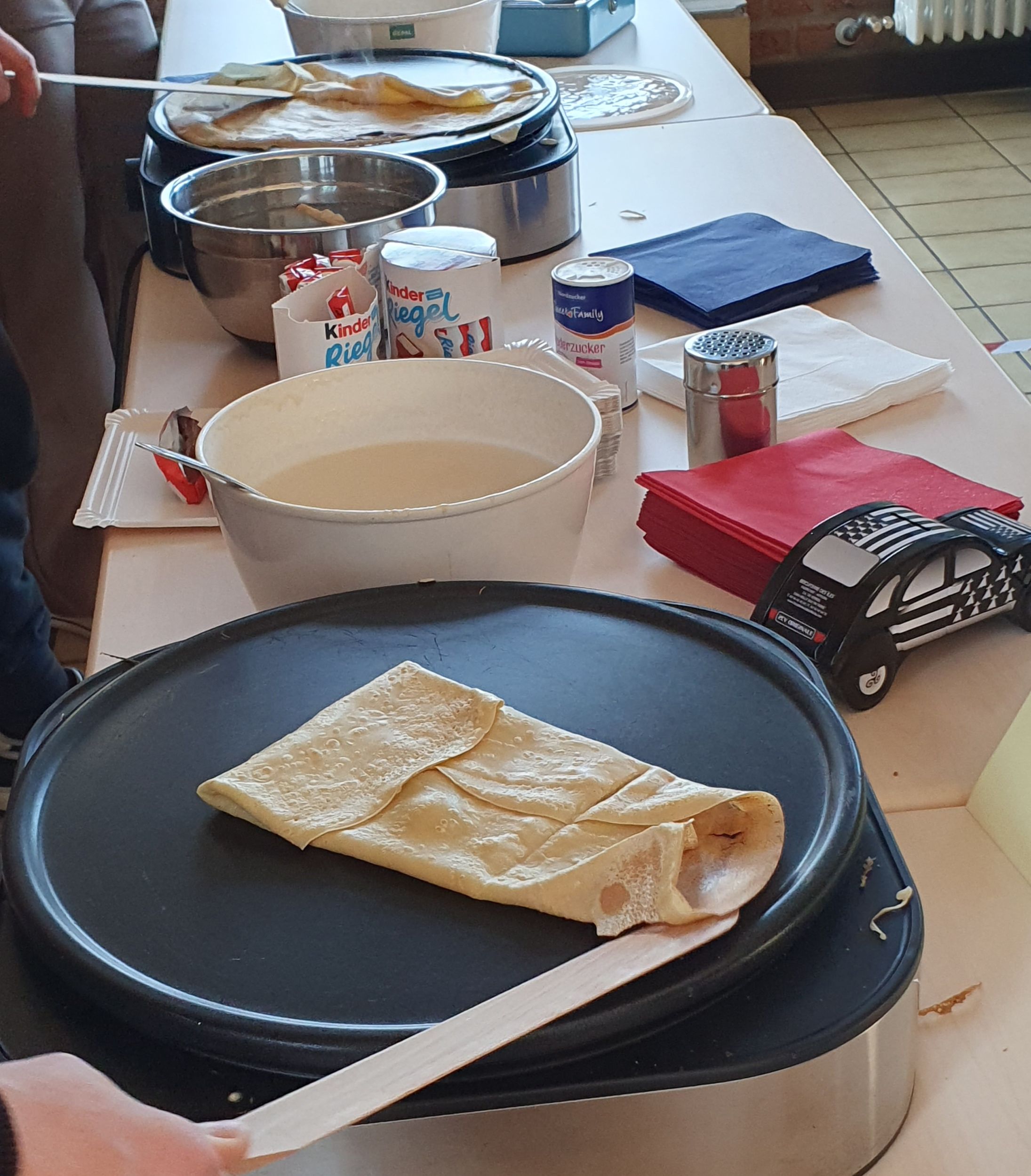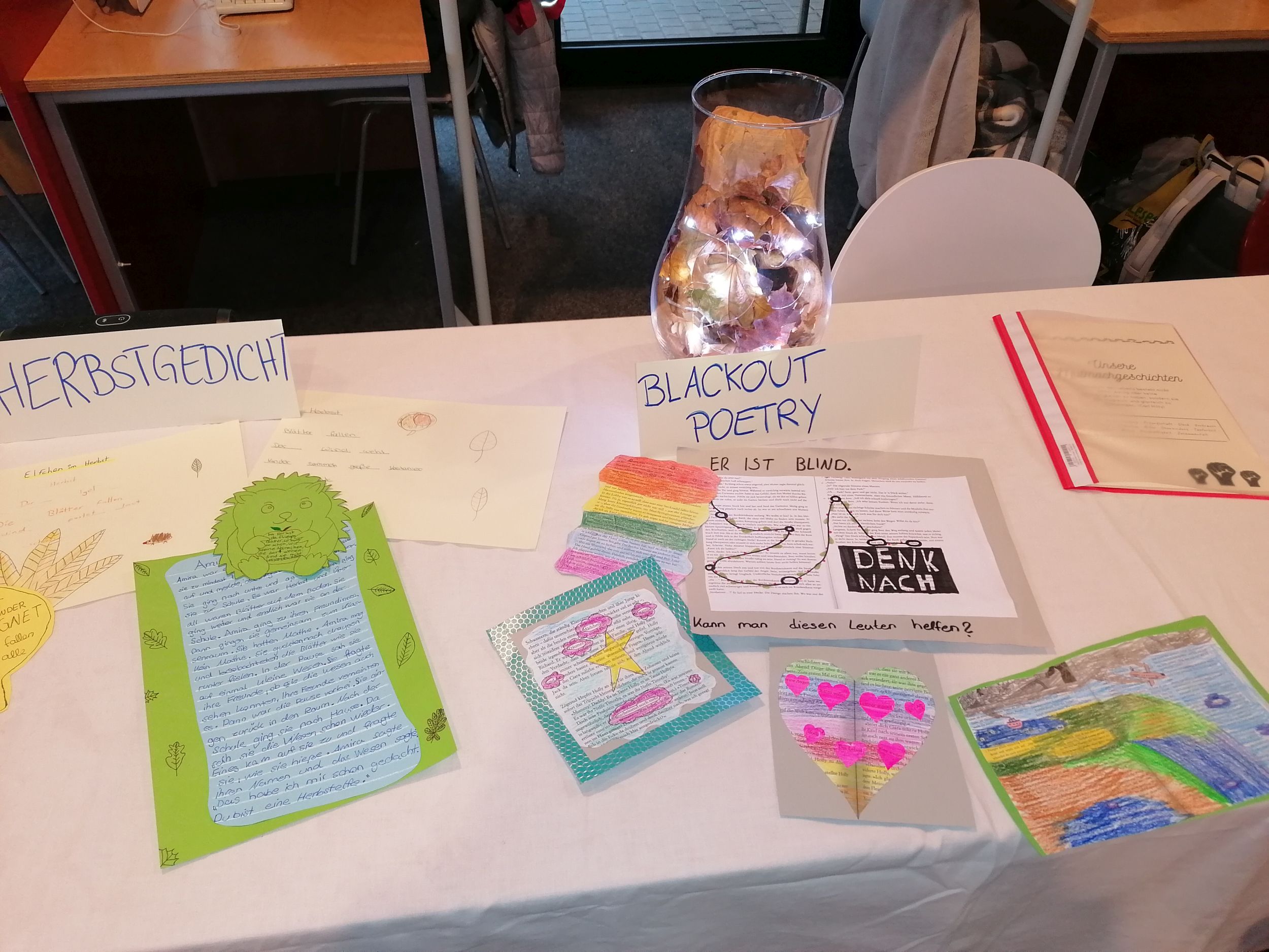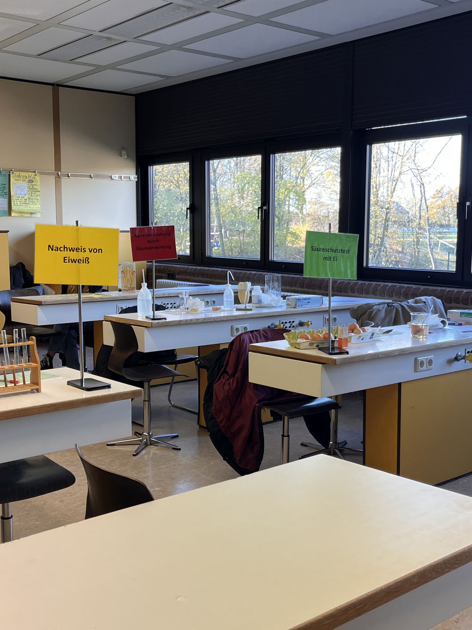 Während die Kinder bemüht waren, für möglichste viele Mitmachangebote Stempel auf ihrem Flyer zu sammeln, nutzten die Eltern die Gelegenheit, sich bei Kaffee und Kuchen in der Mensa oder in der Schulstraße zu unterhalten, sich eingehend zu informieren oder an einer der sechs angebotenen Führungen durch das Gebäude der Schule teilzunehmen. Mitarbeiter der VHS, unser Sozialarbeiter Oliver Flesken und zahlreiche Lehrkräfte standen den Eltern jederzeit zur Verfügung. Aber auch Schüler*innen der SV halfen unseren Gästen den Schnupperunterricht zu finden oder waren zur Stelle, falls sich jemand verirrt hatte.