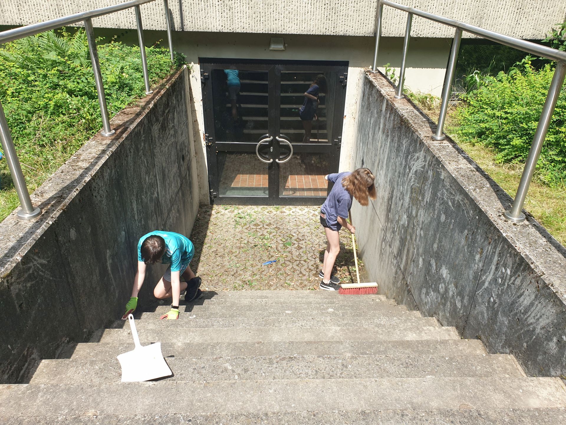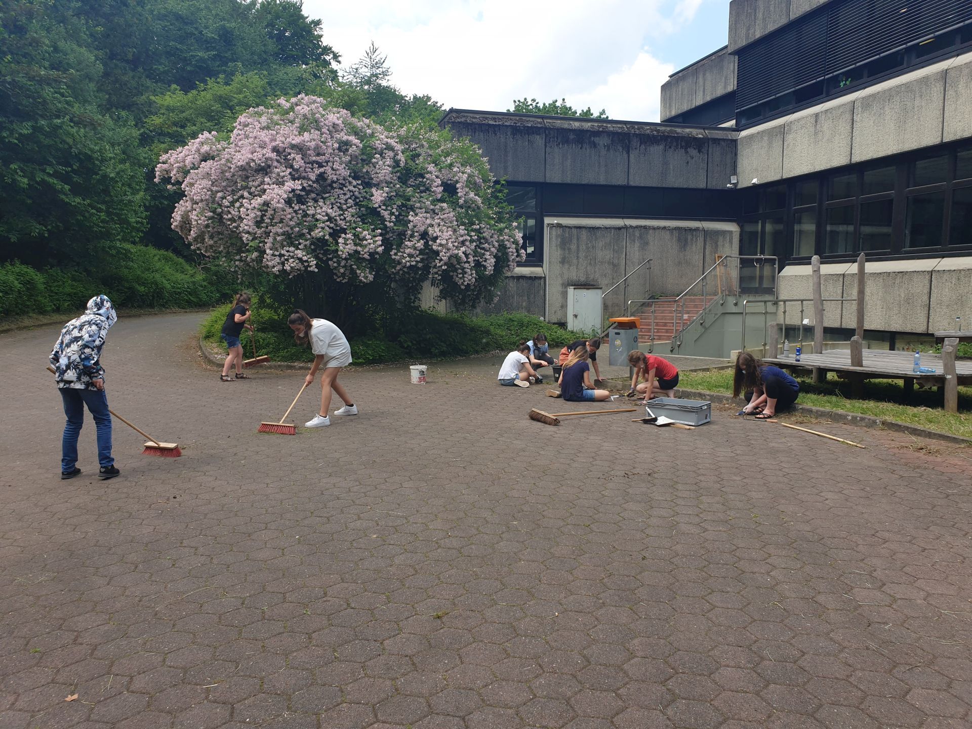 Unsere SV hat daher einen Wettbewerb ins Leben gerufen: Jede Klasse sucht sich einen Bereich aus und kümmert sich um ihn. Obwohl man aus den Mündern mancher Sechs- und Achtklässler angeblich eine gewisse Zurückhaltung zu erahnen glaubt, steigt die Motivation bei fast allen Beteiligten, nachdem der Anfang gemacht ist.