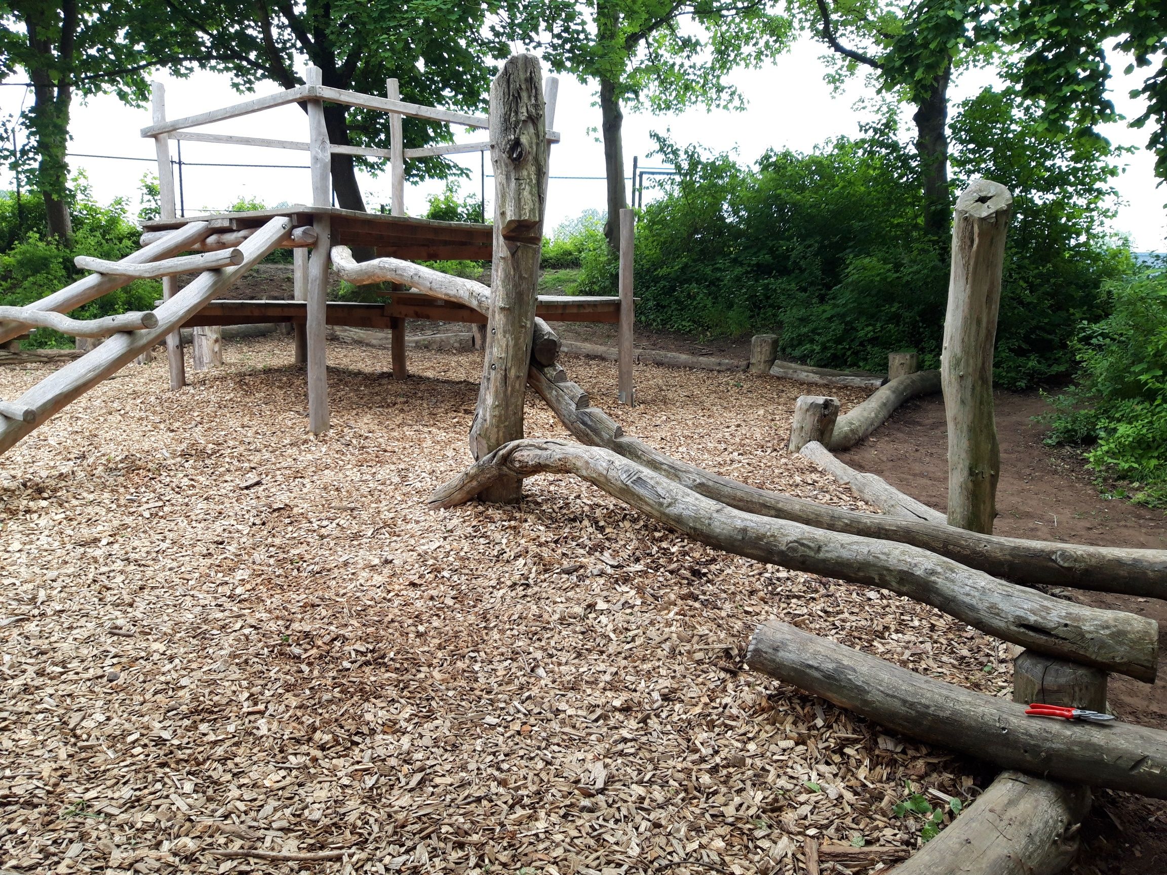 Bei so intensiver Nutzung bleibt es nicht aus, dass Müll liegen bleibt. Auch Wildkräuter sind zwischen den Naturmaterialien nicht chancenlos und erobern sich einige Bereiche zurück.
