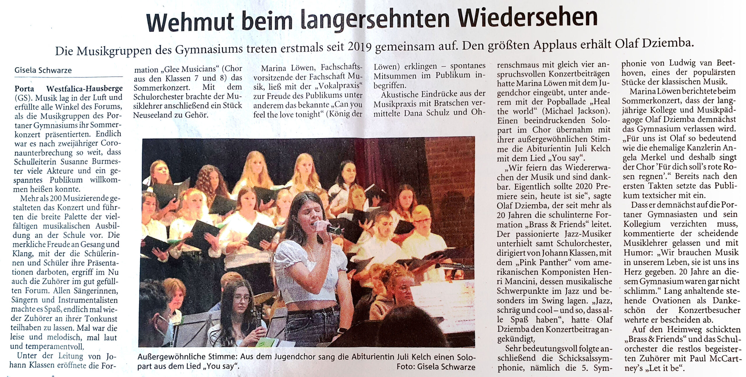 Die vielen Schülerinnen und Schüler sämtlicher Musik-AGs unseres Gymnasiums zeigten am 02. Juni während des Sommerkonzertes ihr Können. Das Publikum honorierte die Schüler/innen mit stehenden Ovationen.