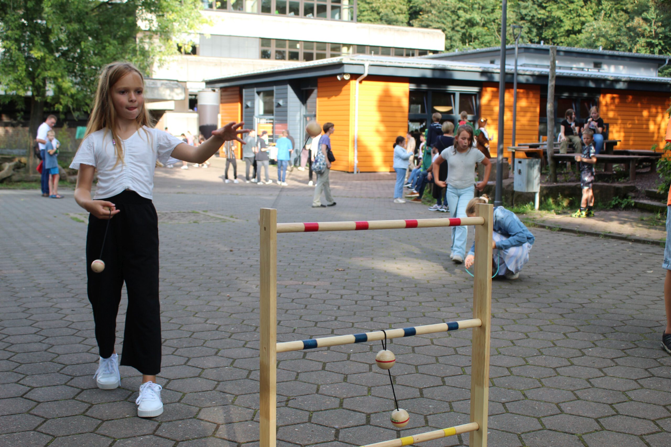 So wurden zahlreiche Bubble-Teas getrunken, Glitzerwaffeln, Fruchtspieße und Zuckerwatte gegessen, Unmengen an Süßigkeiten sowie Popcorn, Slushies und Nachos verdrückt und und und. Auch die kreativen Mitmachstände (unter anderem Jurassic Fun, ein Escape-Room, Leitergolf etc.) lockten wieder viele Besucherinnen und Besucher des Festes an.