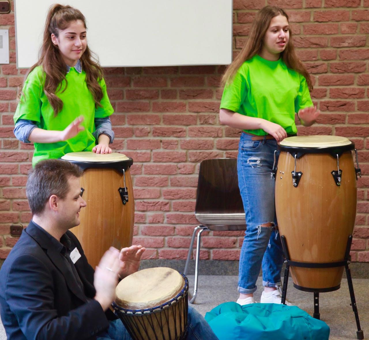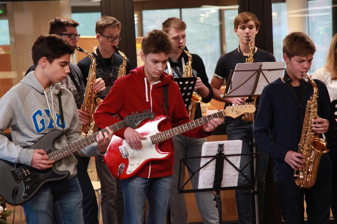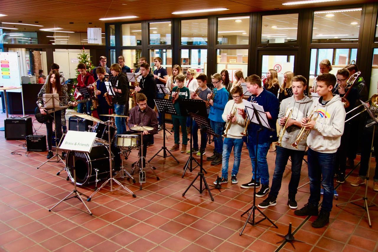 Frei nach dem Motto „Auf die Stempel, fertig, los!“ erkundeten am 26. November viele Viertklässler und ihre Eltern unser Gymnasium. Von herrlichem Waffelduft und den winterlichen Klängen von „White Christmas“ wurden unsere Besucher zunächst zu den Klängen der AG „Brass & Friends“ in die warme Schulstraße gelockt und auf einen farbenfrohen Vormittag in unserem Hause eingestimmt.