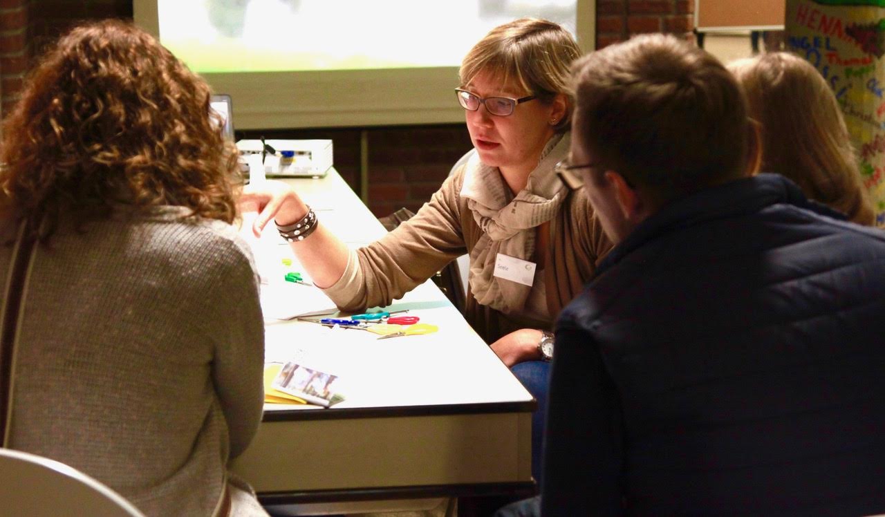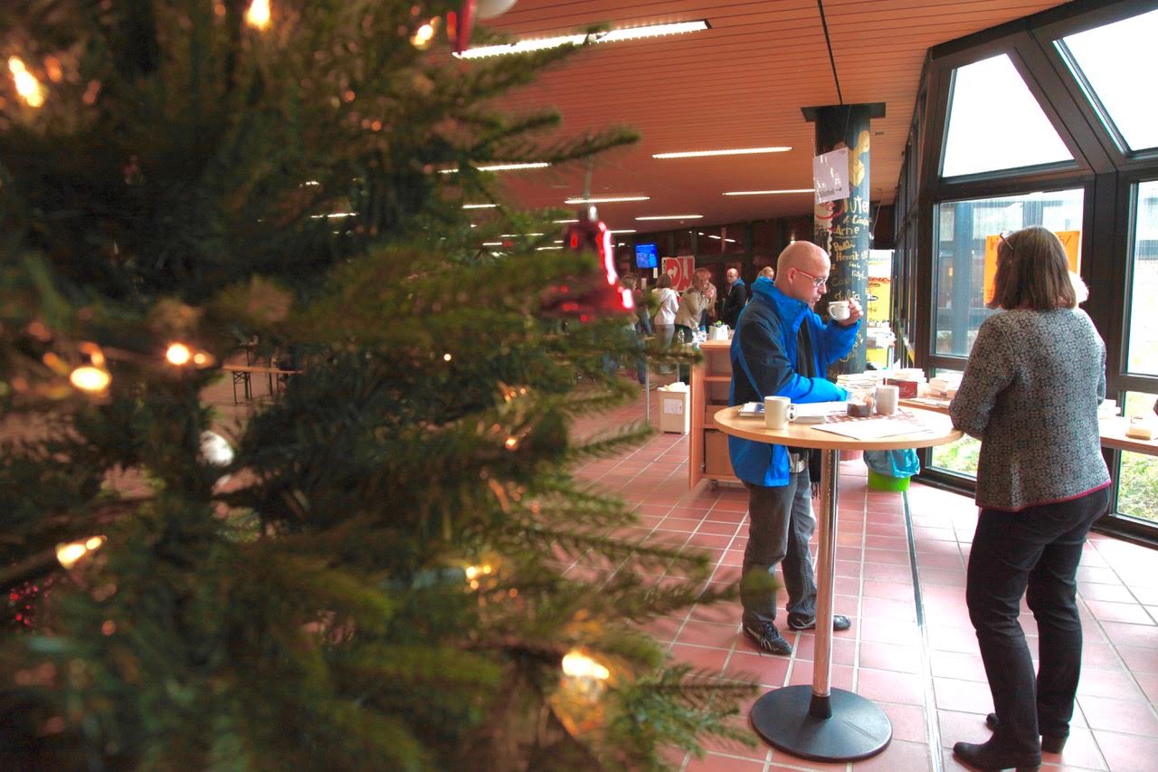 Viele Eltern nutzten währenddessen die Gelegenheit, sich bei Kaffee, Kuchen oder einer Waffel in der Schulstraße gemütlich zusammenzusetzen, zu unterhalten, sich eingehend zu informieren oder eine Führung durch das Gebäude der Schule zu machen. Mitarbeiter der VHS, unser Sozialarbeiter und zahlreiche Lehrkräfte standen den Eltern jederzeit zur Verfügung. Aber auch Schülerinnen und Schüler der SV kamen als „Pfadfinder“ zum Einsatz, indem sie unseren Gästen halfen, den Schnupperunterricht zu finden oder zur Stelle waren, falls sich jemand verirrt hatte.