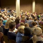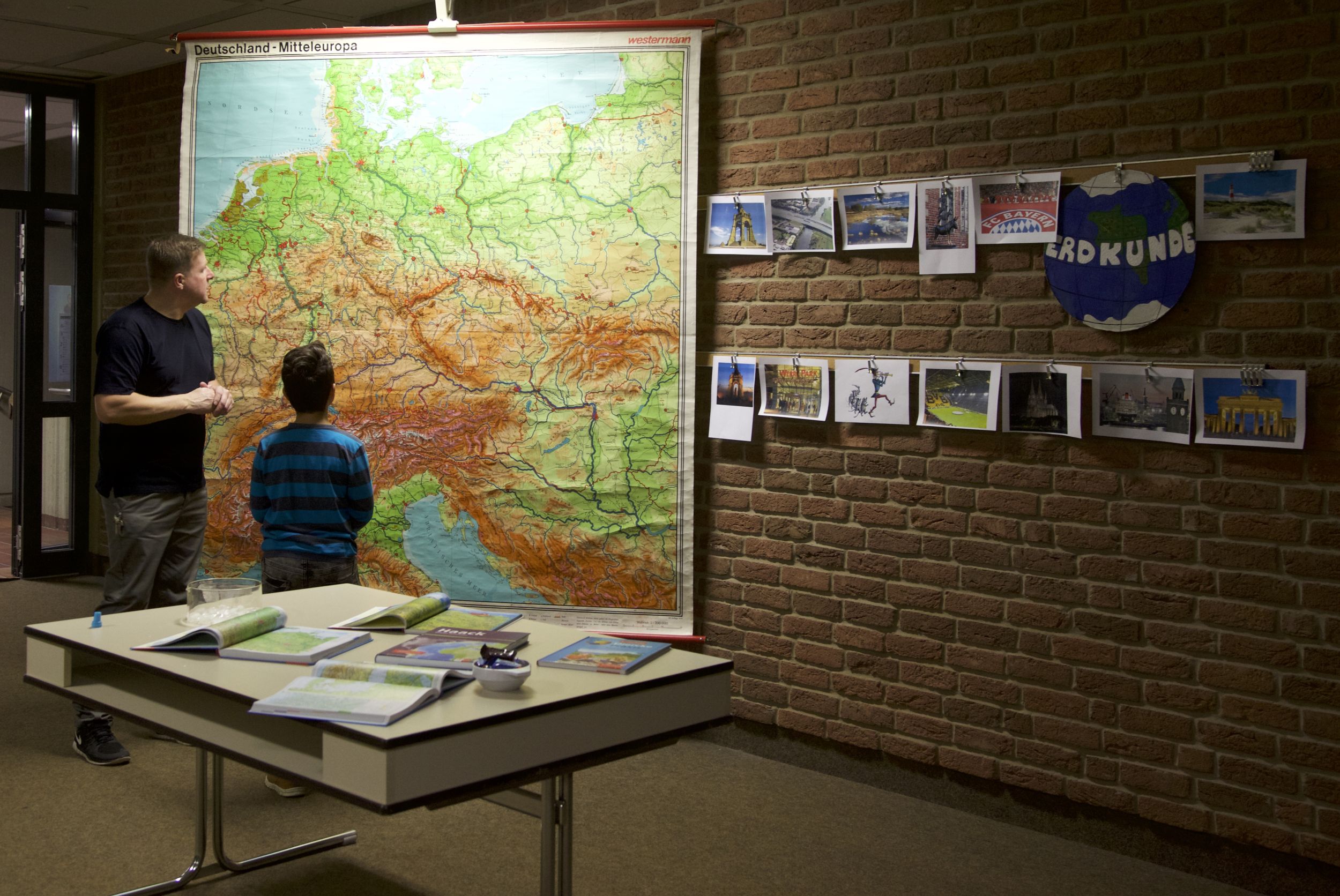 Viele Eltern nutzten währenddessen die Gelegenheit, sich bei Kaffee, Kuchen oder einer Waffel in der Schulstraße gemütlich zusammenzusetzen, zu unterhalten, sich eingehend zu informieren oder eine Führung durch das Gebäude der Schule zu machen. Mitarbeiter der VHS, unser Sozialarbeiter und zahlreiche Lehrkräfte standen den Eltern jederzeit zur Verfügung. Aber auch Schülerinnen und Schüler der SV kamen als „Pfadfinder“ zum Einsatz, indem sie unseren Gästen halfen, den Schnupperunterricht zu finden oder zur Stelle waren, falls sich jemand verirrt hatte.