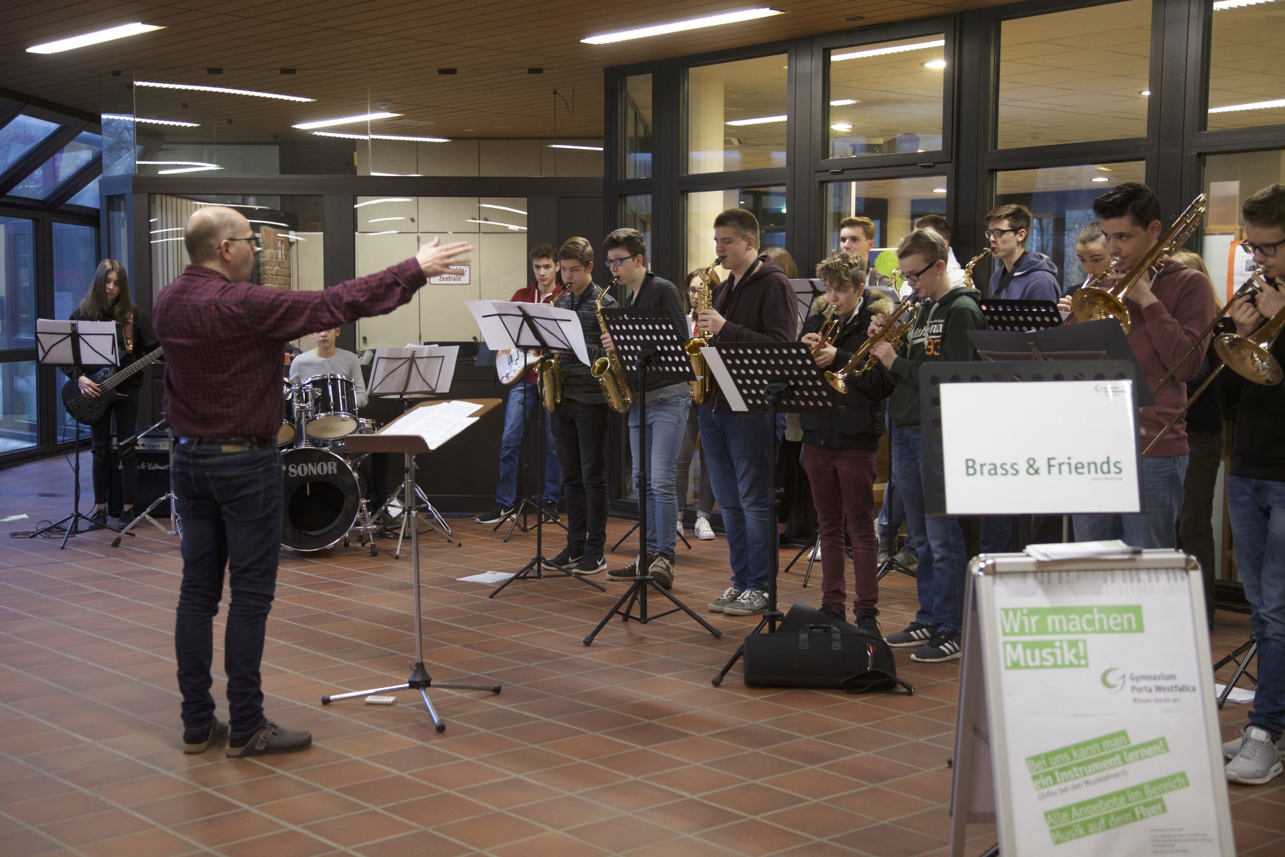 Frei nach dem Motto „Auf die Stempel, fertig, los!“ erkundeten am 25. November viele Viertklässler und ihre Eltern unser Gymnasium. Von herrlichem Waffelduft und den swingenden Tönen von „Blue Moon“ wurden unsere Besucher zunächst zu den Klängen der AG „Brass & Friends“ in die warme Schulstraße gelockt und auf einen farbenfrohen Vormittag in unserem Hause eingestimmt.