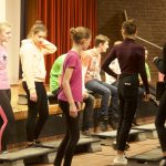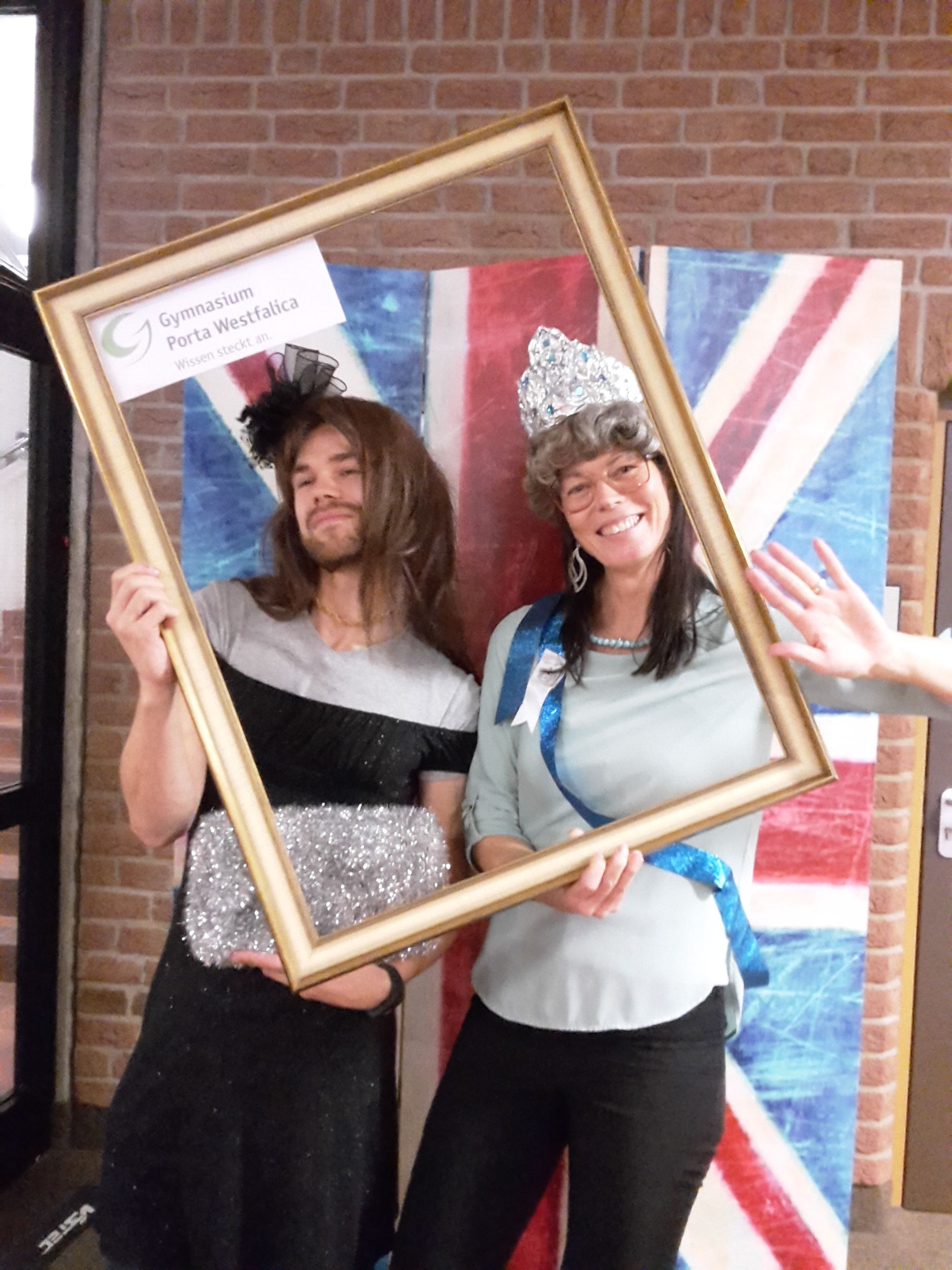 Schwungvoll und gut gelaunt begann dann um 9.15 Uhr im Forum die allgemeine Begrüßungsveranstaltung mit einem Auftritt der Chor-AG „Fresh“, die „Riesentalent“ und „What shall we do with the drunken sailor“ sangen. Daran schloss sich – nach einer herzlichen Begrüßung durch die Schulleiterin Susanne Burmester – ein choreographisch kreativer Stepaerobikbeitrag der 8b an.