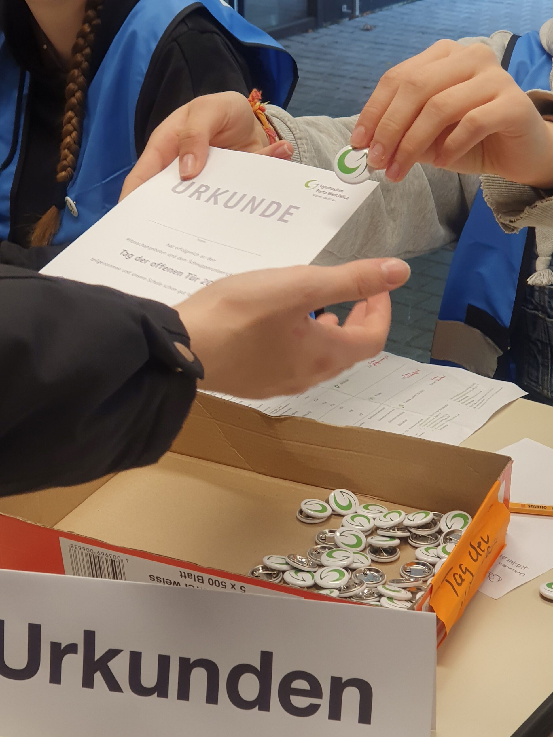 Während die Kinder bemüht waren, für möglichste viele Mitmachangebote Stempel auf ihrem Flyer zu sammeln, nutzten die Eltern die Gelegenheit, sich bei Kaffee und Kuchen in der Schulstraße zu unterhalten. An dieser Stelle bedanken wir uns für das reichhaltige und sehr abwechslungsreiche Kuchenbuffet, welches von den Eltern der Fünftklässler*innen angeboten wurde. Neben dem kulinarischen Angebot konnten die Eltern sich in der Schulstraße eingehend informieren oder an einer der sechs angebotenen Führungen durch das Gebäude der Schule teilnehmen. Mitarbeiter der VHS, unser Sozialarbeiter Oliver Flesken und zahlreiche Lehrkräfte standen den Eltern jederzeit zur Verfügung. Aber auch Schüler*innen der SV halfen unseren Gästen, den Schnupperunterricht zu finden oder waren zur Stelle, falls sich jemand verirrt hatte.