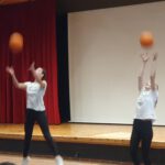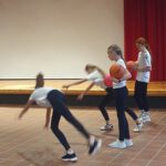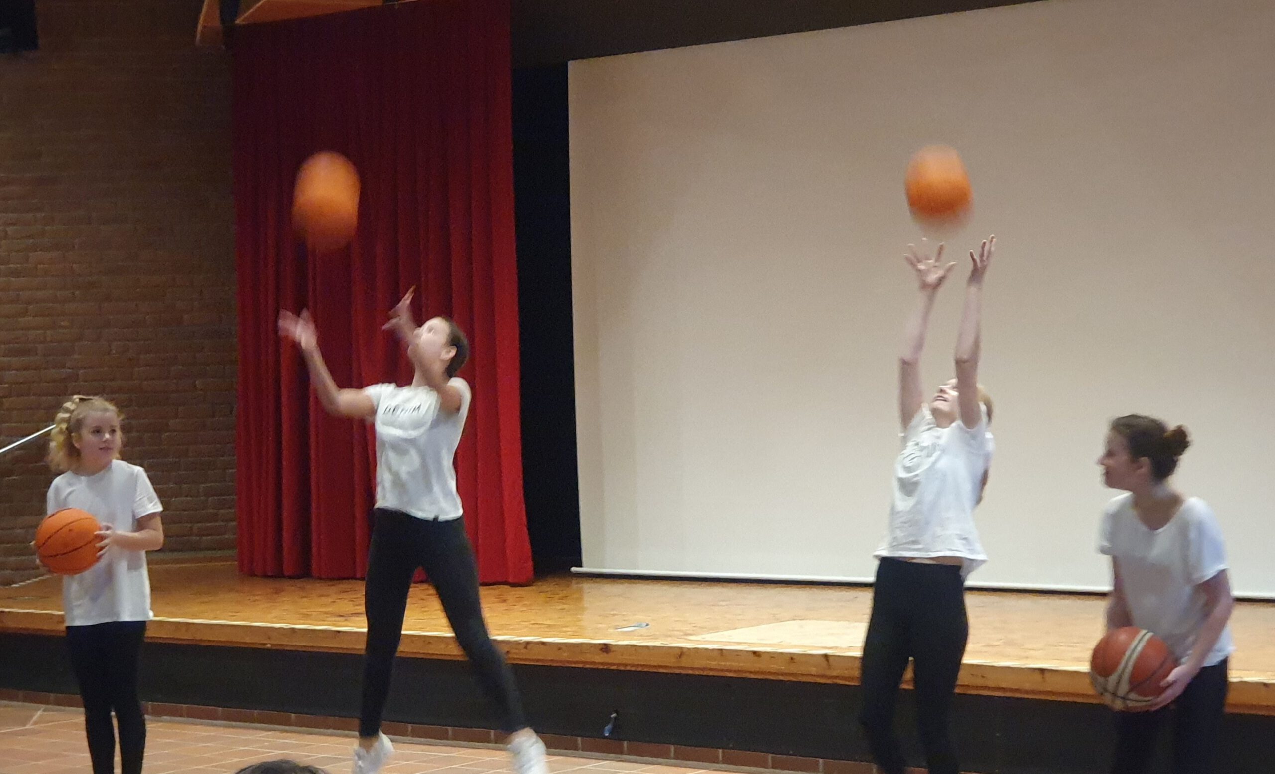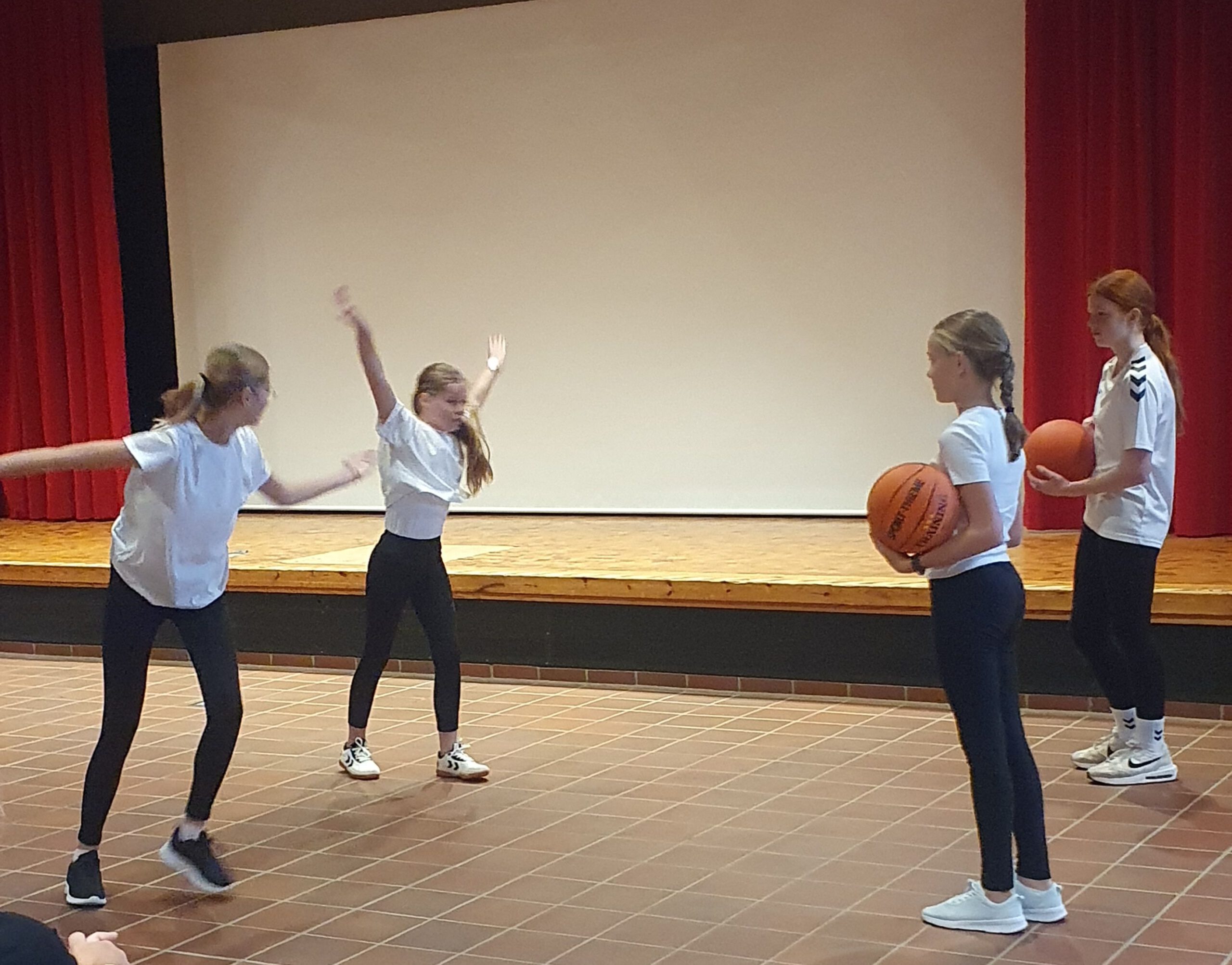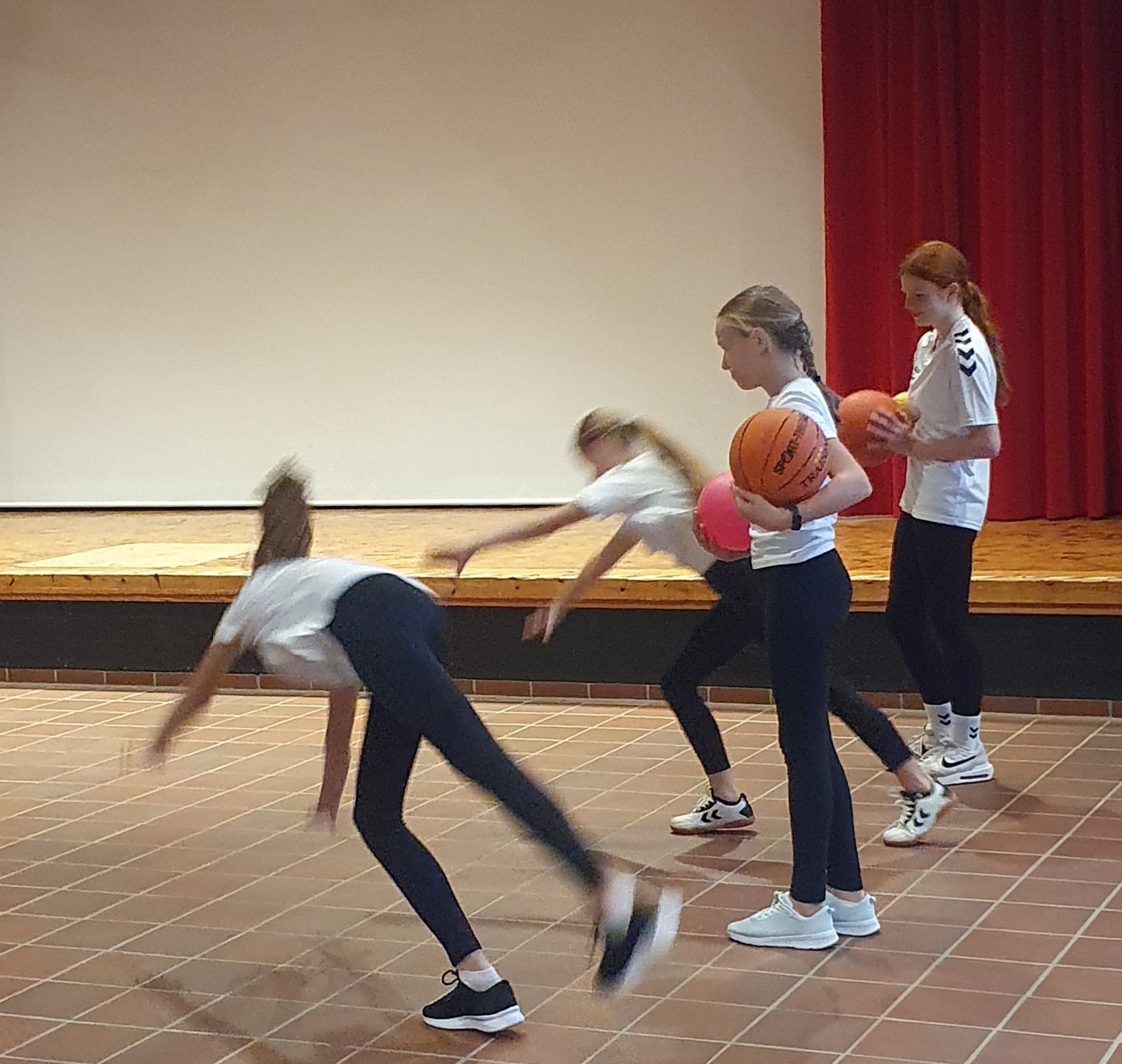 Zwischen den beiden musikalischen Beiträgen begrüßte die Schulleiterin Susanne Burmester die Gäste und kündigte den sportlichen, turbulenten Auftritt von Emma, Merle, Nadja, Neela, Lia, Johanna, Naemi und Thirza aus der Klasse 7A an, welche mit ihrer BallKoRobics-Choreografie auch die letzten noch schläfrigen Großen und Kleinen wachrüttelten und mit ihrer Geschicklichkeit am Ball beim Publikum für leuchtende Augen und großen Beifall sorgten.