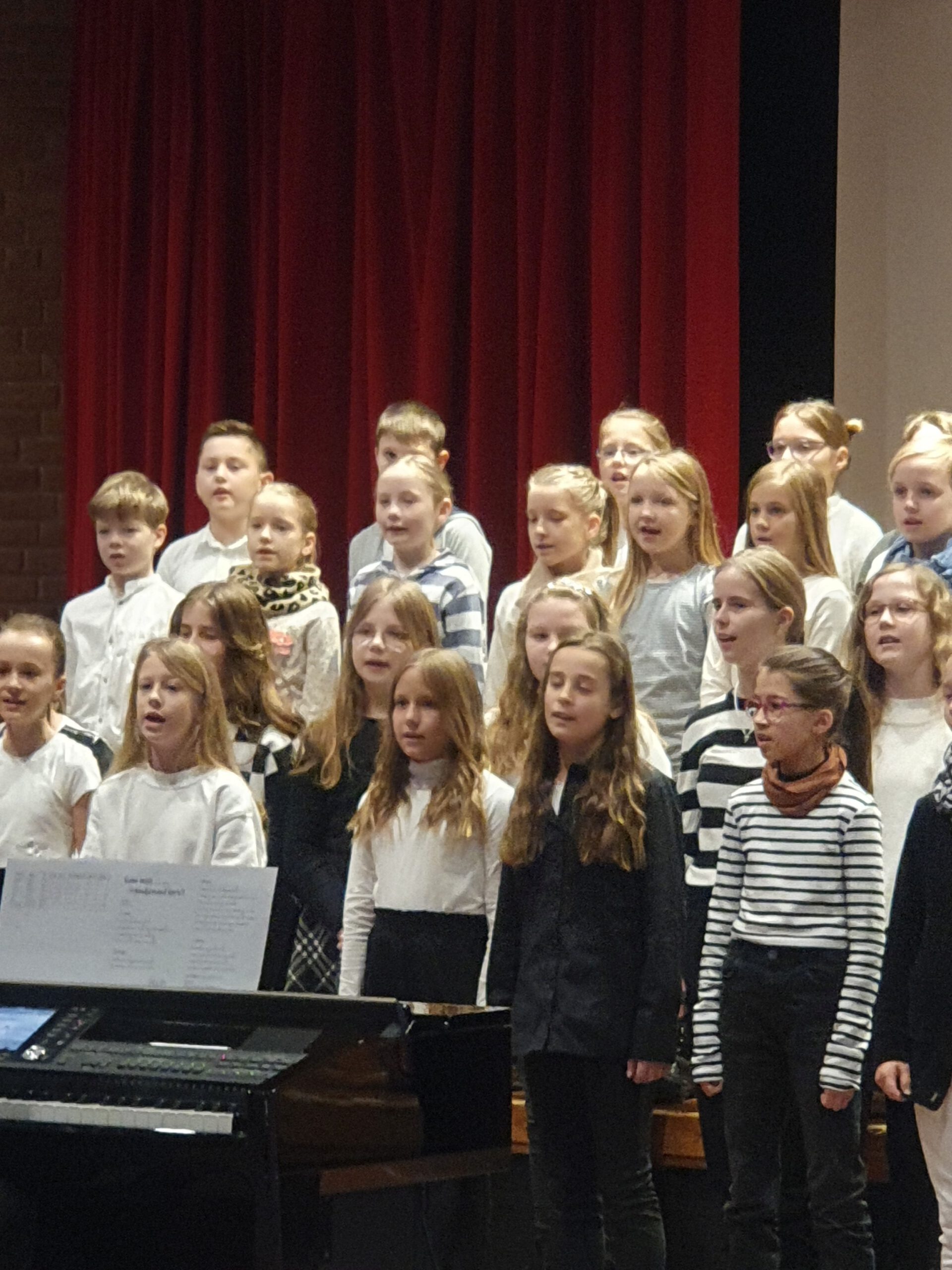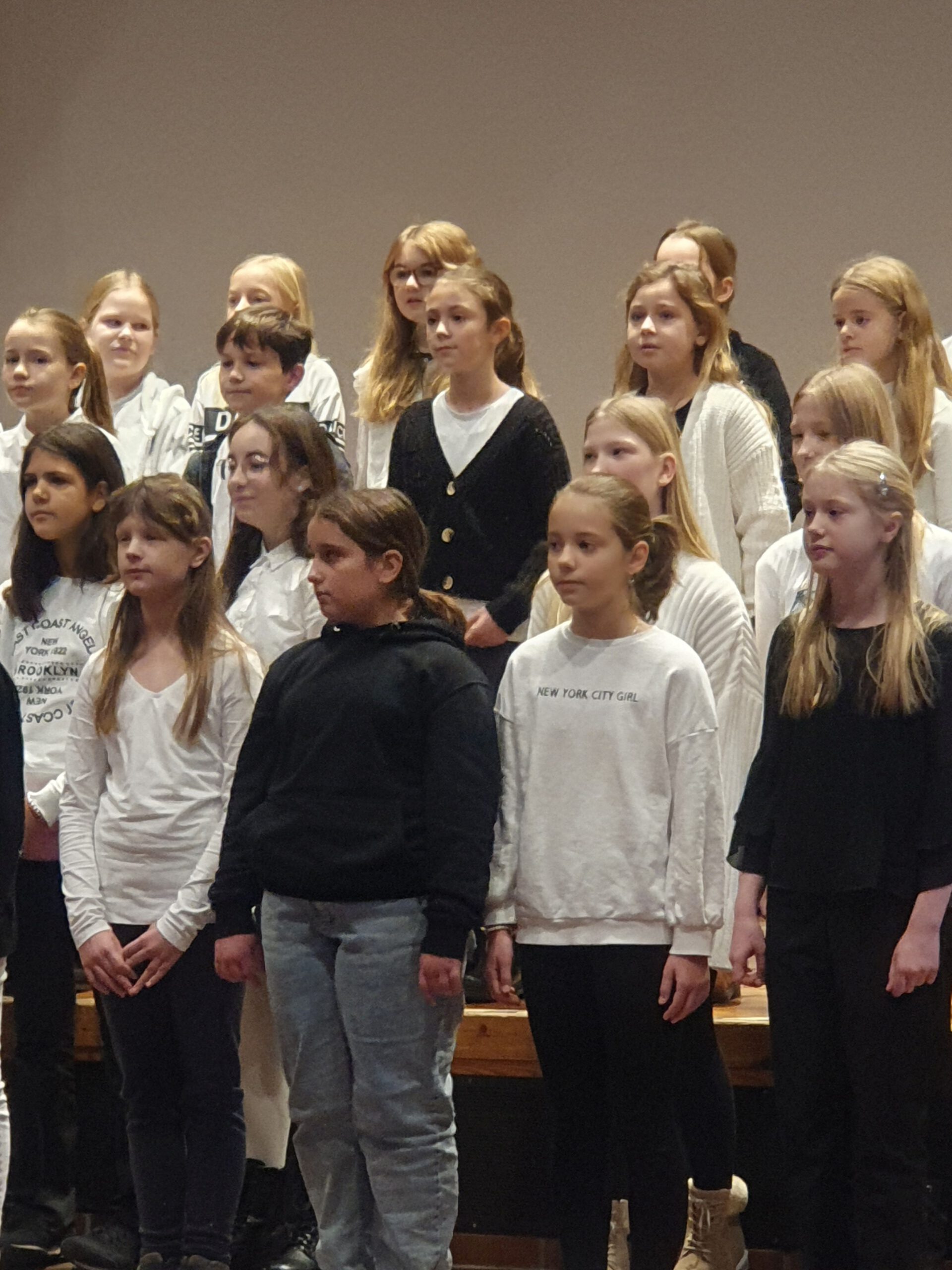 Gut gestimmt begann um 9:15 Uhr die allgemeine Begrüßungsveranstaltung mit dem Auftritt der AG „Fresh“ unter der Leitung von Jan Voß. Mit den Liedern „Fünf“ aus der Buchreihe „Alea Aquarius“ und „Kann mich irgendjemand hör‘n“ aus dem Film „Die Schule der magischen Tiere“ ging es mit viel Energie los: Textzeilen, wie „Kommt schon Leute, los geht’s“ oder „Und in der Luft, da liegt Magie“ machten die Chorsänger*innen den Viertklässlerinnen und Viertklässlern Mut, sich auf die Entdeckungsreise einzulassen und versprachen magische Momente.