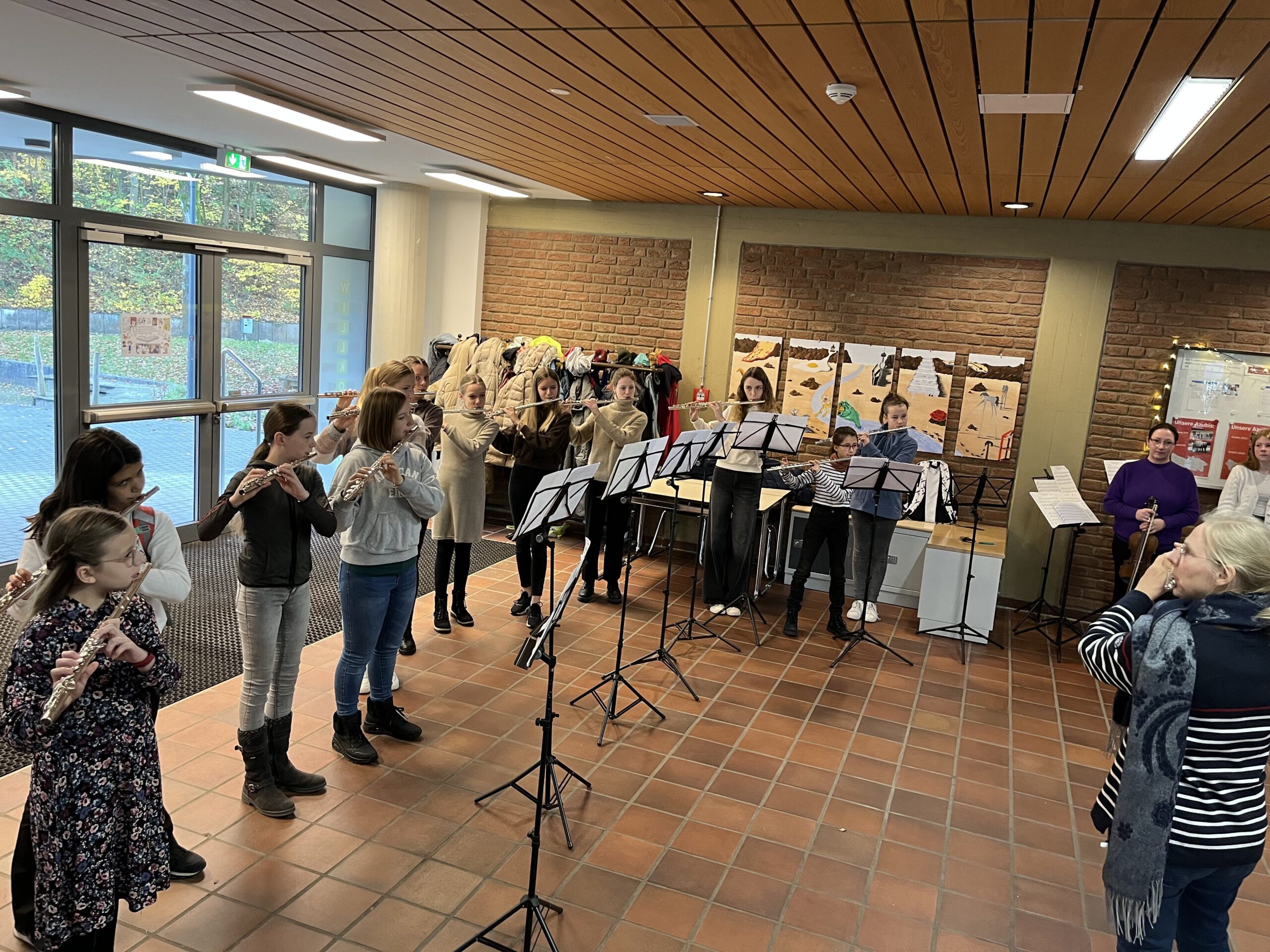 Am 18. November verwandelte sich unser Gymnasium für die Viertklässler*innen und ihre Eltern in einen spannenden, fröhlichen, sportlichen, musikalischen, aber vor allem ungewöhnlichen Lern- und Lebensort. Von herrlichem Waffelduft in die Schulstraße gelockt, wurden die kleinen und großen Gäste von kraftvollen Klängen des Klavieres, gespielt von Oscar de Vink (Q1), auf einen abwechslungsreichen Vormittag in unserem Hause eingestimmt.