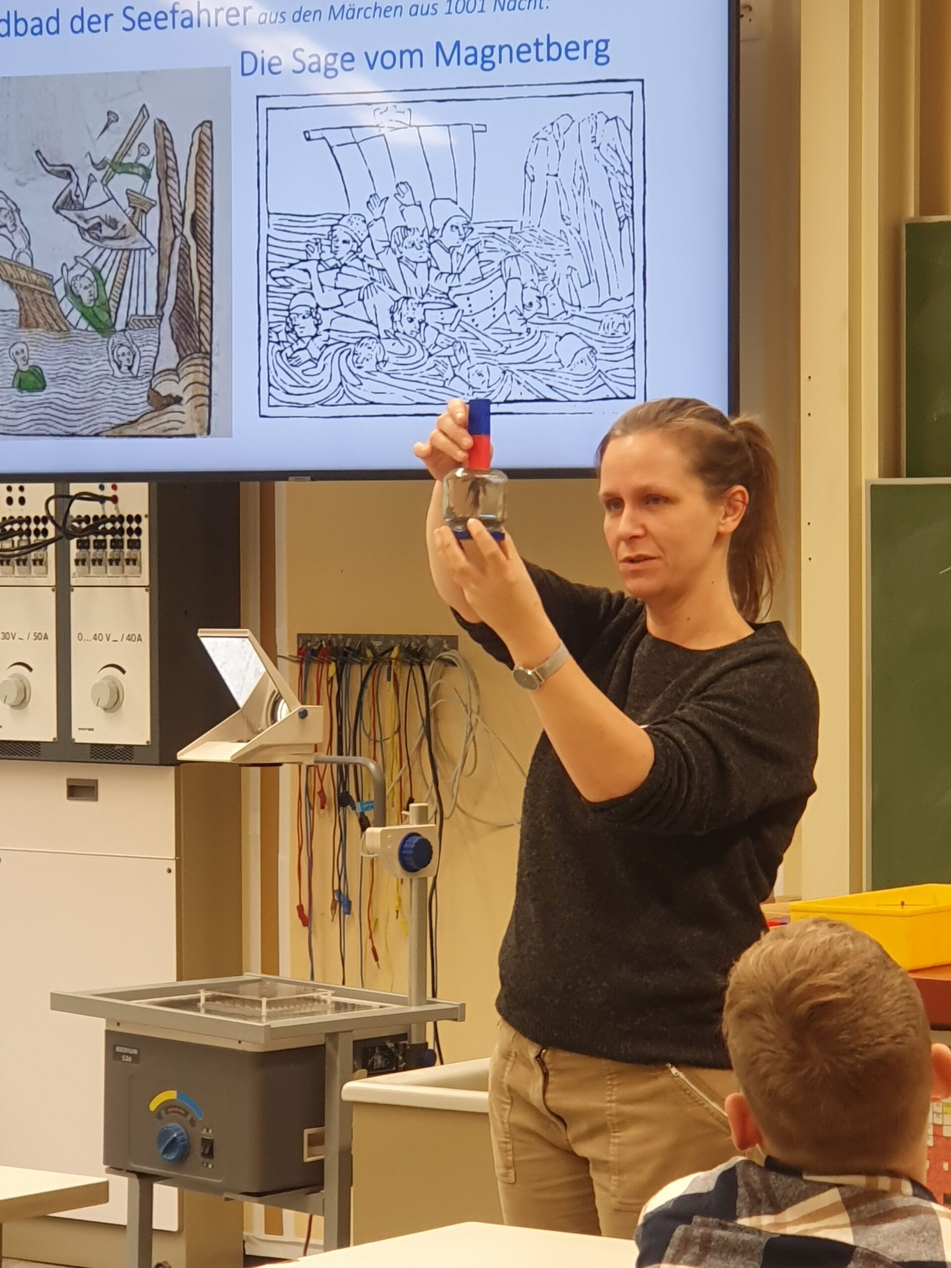 In den Fächern Physik, Biologie, Französisch, Latein und Mathematik konnten die Grundschüler*innen in zwei Etappen, jeweils 30 Minuten lang, am Schnupperunterricht teilnehmen. Begeistert stürmten sie im Anschluss aus den Unterrichtsräumen und berichteten über die neu gewonnenen Erkenntnisse. Ganz besonders beeindruckend war der Biologieunterricht, da dort der Hund Greta als lebendes Anschauungsobjekt zum Thema „Hunde“ der Star der Stunde war. Parallel zum Schnupperunterricht hatten die Gäste die Gelegenheit, an verschiedenen Experimenten, zahlreichen Mitmach-Aktionen und Ratespielen teilzunehmen. Das Angebot war vielseitig und kreativ: pH-Werte messen, grüne Flüssigkeit in blaue Flüssigkeit verwandeln, Tore schießen, Bälle werfen, auf einem Balken balancieren, einen Stopmotion-Film zum Thema Märchen erstellen, Kahoot-Quiz zu musikalischen Fragen spielen, Geldscheine anzünden, Silber in Gold verwandeln, Staubexplosion beobachten, einen selbst zusammengebauten Stirlingmotor beobachten, ein Foto mit der des Lieblingscharakters aus einem Buch schießen, kreative Gedichte schreiben, den Instrumentierenden aus der Musikpraxis lauschen, den sprechenden Hut aus Hogwarts nach der passenden Schule fragen, leckere Crêpes probieren und noch vieles mehr. Zahlreiche Schüler*innen unserer Schule unterstützen die Besuchenden beim Basteln, Experimentieren und Malen, wofür wir uns an dieser Stelle ganz herzlich bedanken.