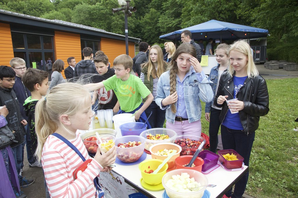 Eine Besonderheit dieses Jahr war der Menschenkicker. Dort traten Schüler- und Lehrerteams gegeneinander an. (Hierbei ist anzumerken, dass das Lehrerteam schon in der Gruppenphase das Turnier verlassen musste.) Für das leibliche Wohl war aber auch zu Genüge gesorgt. Von der klassischen Bratwust, über Burger, bis hin zu Eis, war alles dabei. Am Nachmittag wurde das Fest musikalisch untermalt von den Duos Kim und Kia Kuhnert sowie Anna Peußner und Melina Rinne. Anschließend traten noch die Jam Session von Herrn Föllmer und der City Talent Finalist Isaak Guderian auf.