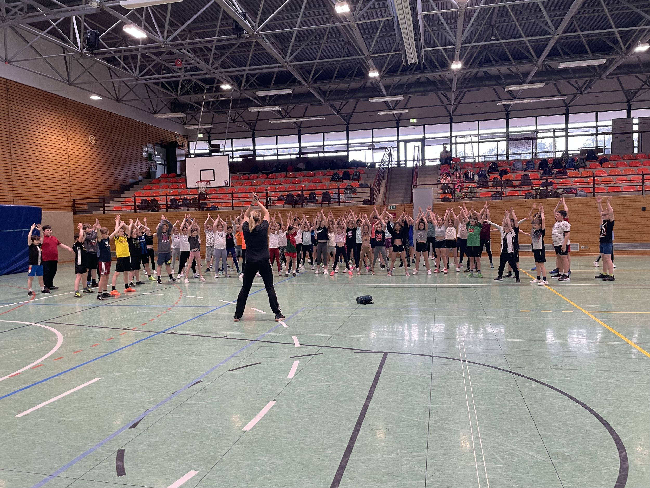 Es ging laut zu, als am Dienstag unsere drei fünften Klassen zusammen kamen, um sich in einer Doppelstunde im Völkerball zu messen. Dabei durfte jede Klasse zwei Mannschaften stellen, die dann jeweils in zwei Spielen ihr Können im Fangen, Werfen und Ausweichen unter Beweis stellen konnten.