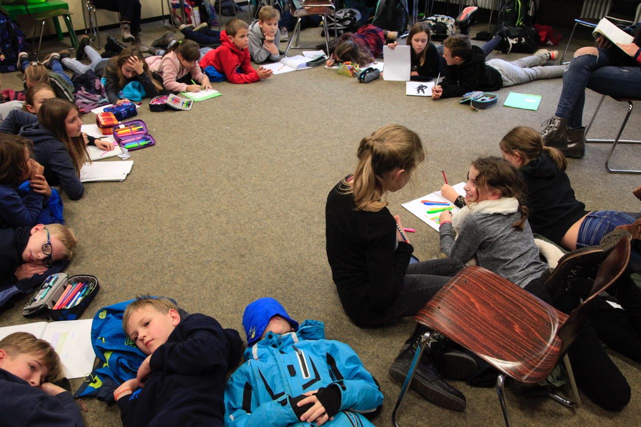 In gemütlicher Runde im Stuhlkreis oder gleich über den ganzen Klassenraum verteilt machten es sich alle gemütlich und tauchten in die Welt der Literatur ein. Schon nach kurzer Zeit gelang es den Vorleser/inne/n die Kopfkinos zu aktivieren. Teilweise war es so still, dass man eine Stecknadel auf den Boden fallen hätte hören können. Um das spannende Kapitel noch zu Ende zu hören „opferten“ manche begeisterte Zuhörer/inne/n sogar ihre große Pause.