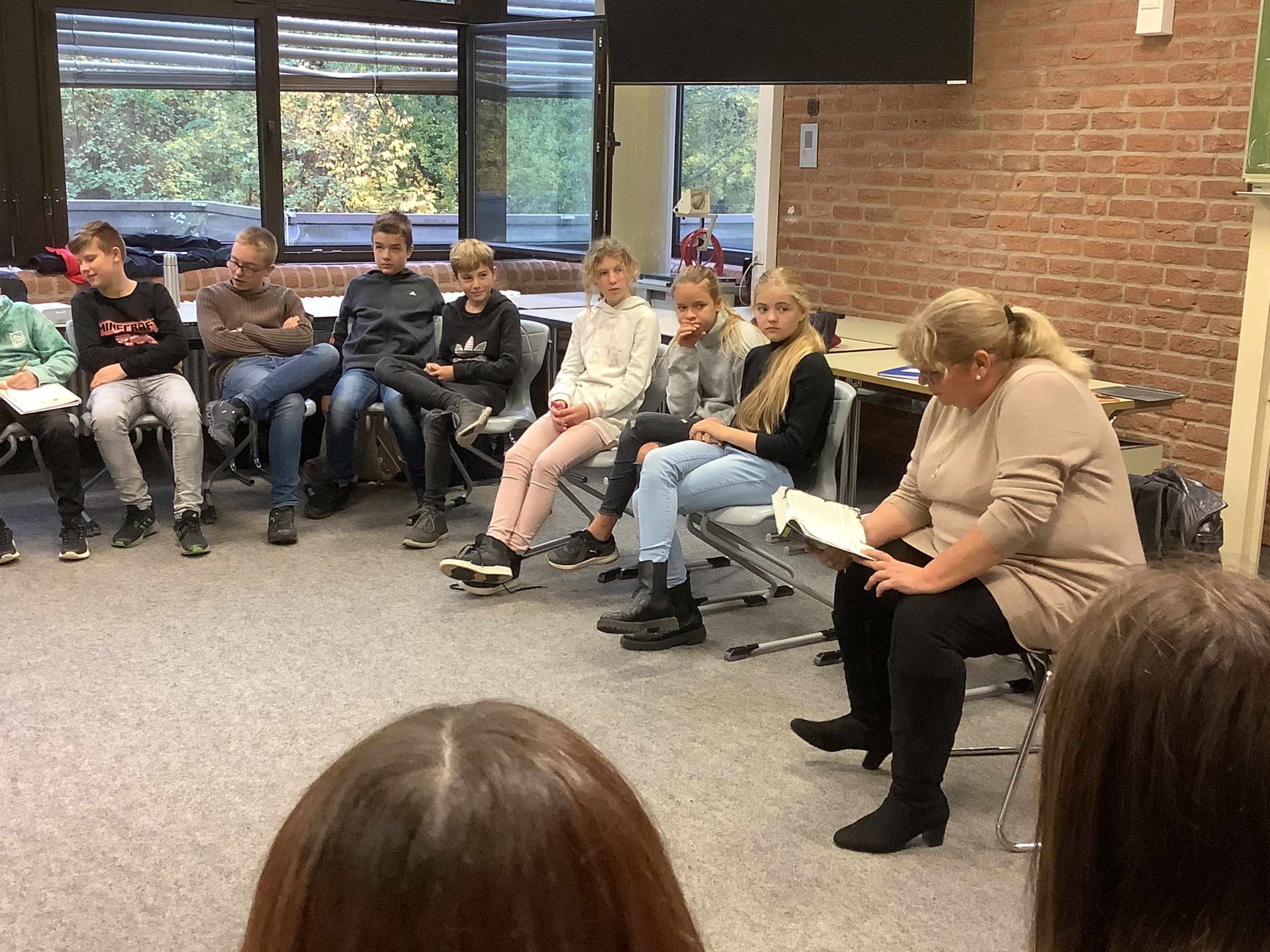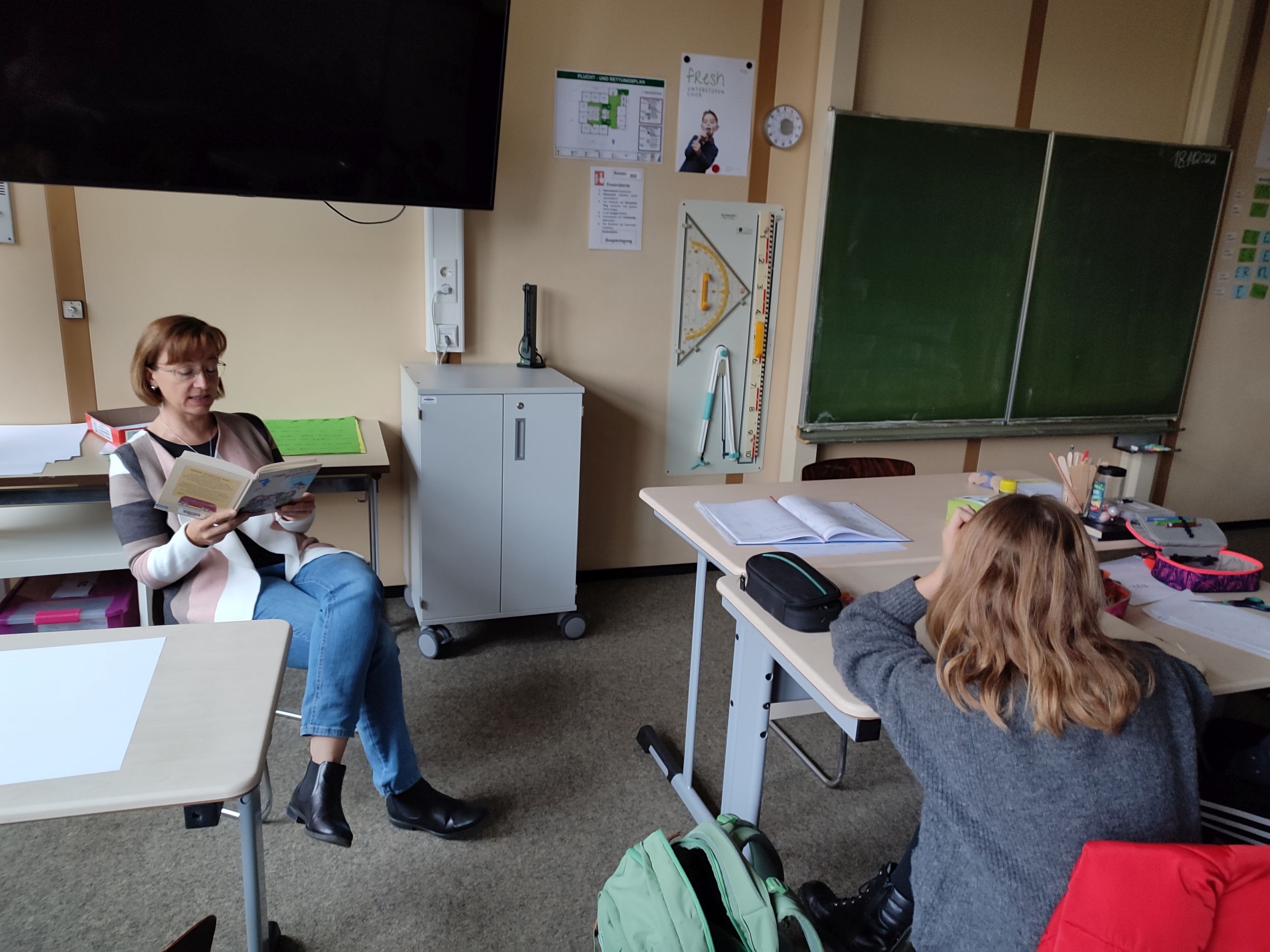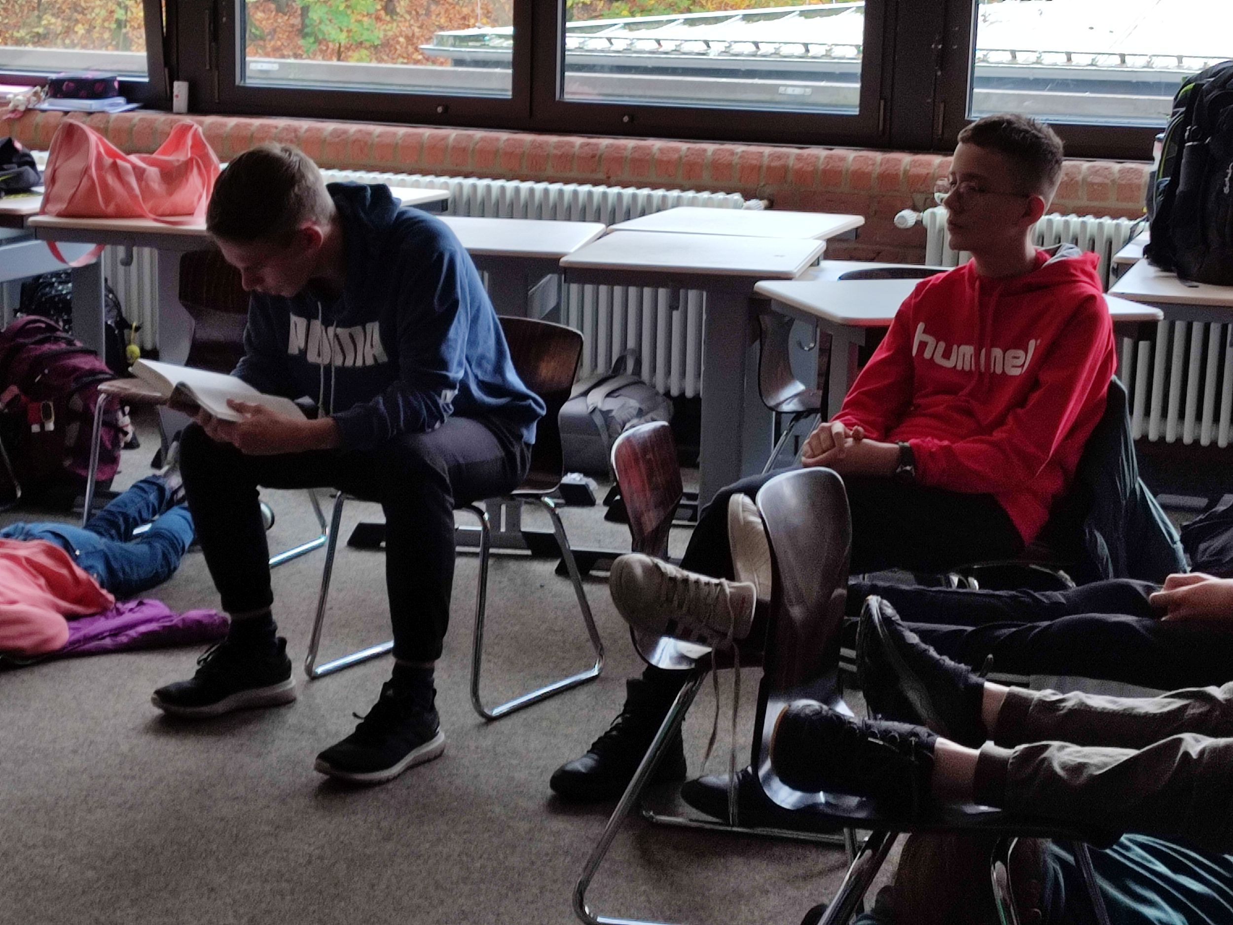 Ob in klassischer Sitzordnung, im Kreis oder auf dem Boden – jede Klasse machte es sich gemütlich. Schnell verflog die Zeit, die letzten Zeilen wurden häufig erst nach dem Gong gelesen. Dafür wurde auch gerne eine verkürzte Pause in Kauf genommen. Fast alle Bücher können in der Schulbibliothek entliehen und weiter gelesen werden.