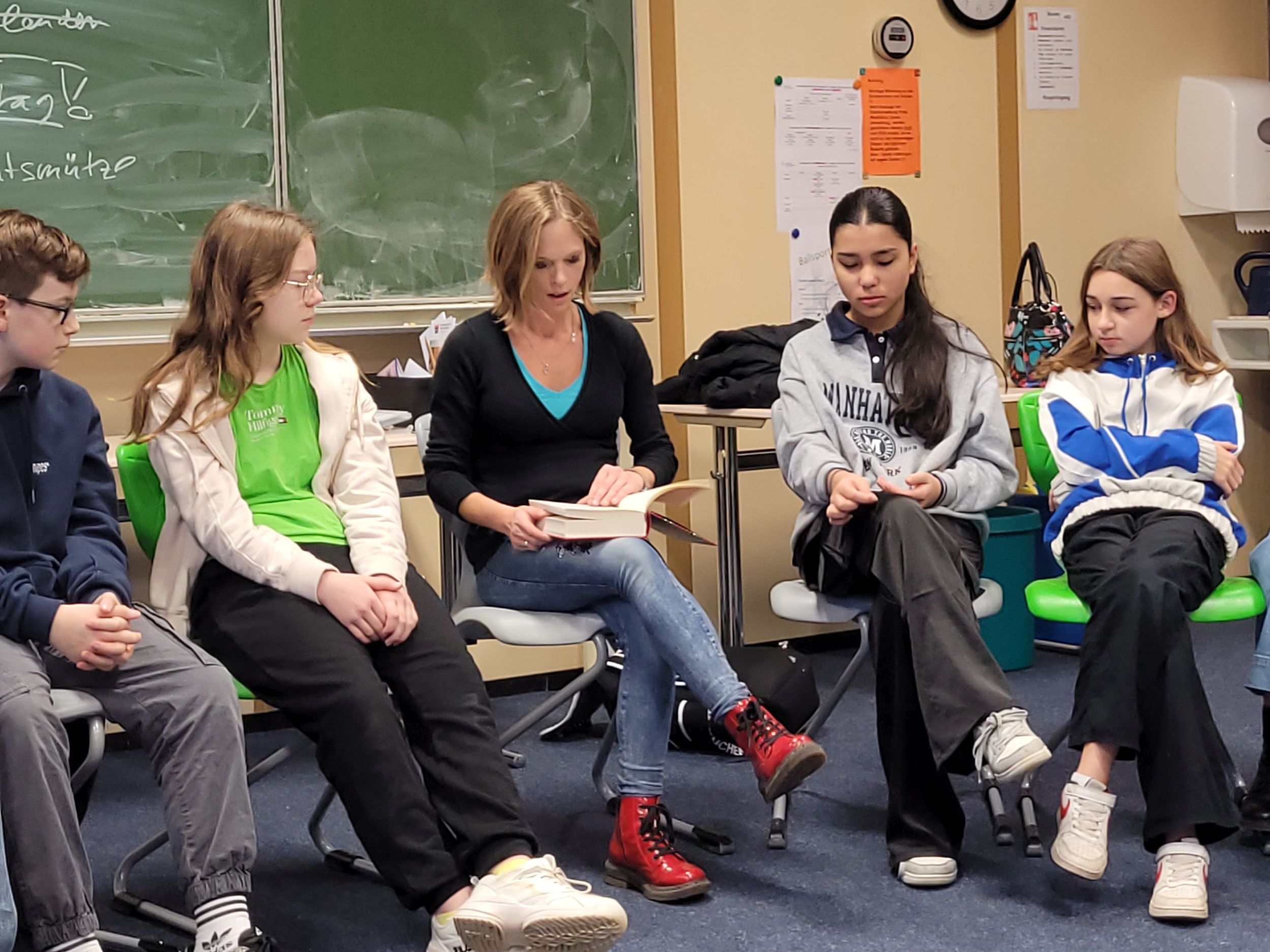Auch für Gemütlichkeit in den Klassenräumen war gesorgt, ob in klassischer Sitzordnung, im Kreis oder auf dem Teppichboden. Teilweise reichte die Stunde nicht aus, so dass das (Vor-)Lesevergnügen bis in die Pause andauerte. Die meisten Bücher stehen in der Schulbibliothek bereit und können ausgeliehen werden, so dass weiter geschmökert werden kann.
