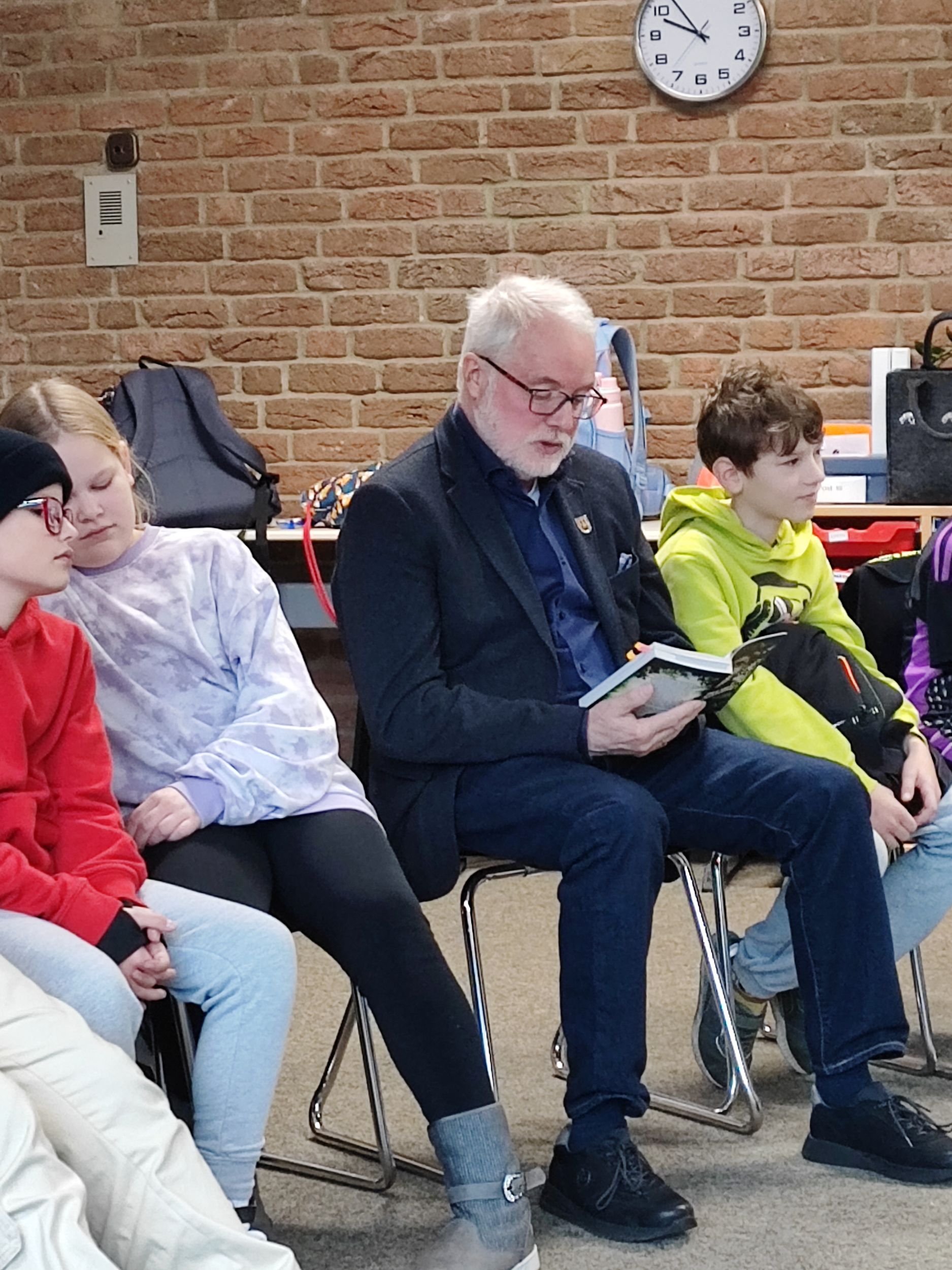 Vielfältig wie die Auswahl der Bücher waren auch die Vorlesenden: Porta Westfalicas stellvertretender Bürgermeister Karl Erich Schmeding (Premiere), Bürgermeister a. D. Bernd Hedtmann (bereits die neunte Lesung), Schulsekretärin Margret Möller, Schulsozialarbeiter Oliver Flesken, die Deutschlehrerinnen Christiane Kutzer und Marina Löwen sowie Emre Aydin (10B), Benjamin Brinkmann und Oscar de Vink (Q1) faszinierten auf ihre ganz unterschiedliche Art und Weise die jungen Zuhörerinnen und Zuhörer.