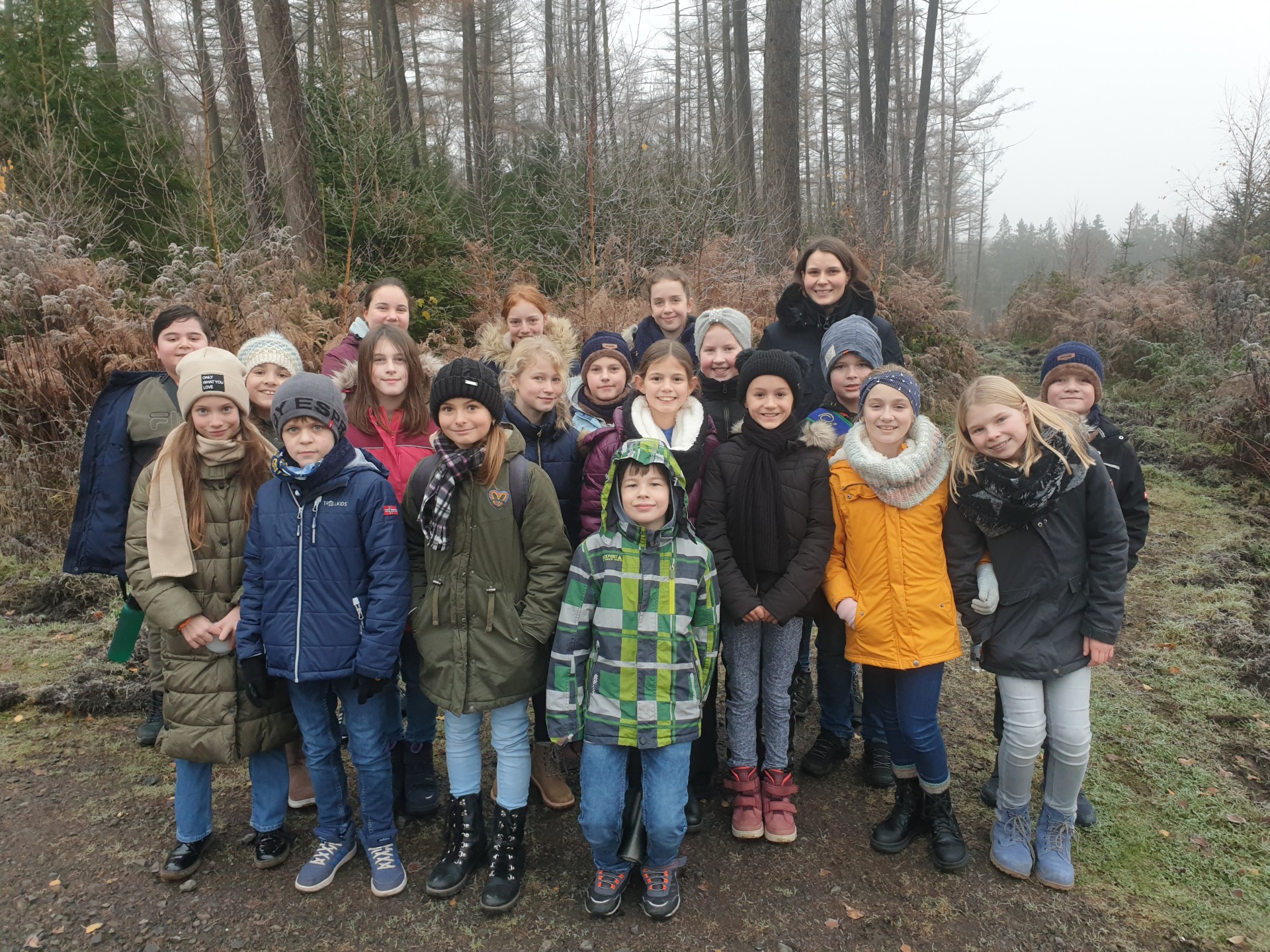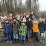 Um kurz nach 9 Uhr gingen wir zurück in den Klassenraum, setzten uns in einen Stuhlkreis und packten nacheinander unsere Wichtelgeschenke aus – zumindest diejenigen, die das Glück hatten, selbst anwesend zu sein und auch ihr Päckchen finden zu können. Es waren ganz tolle Geschenke dabei! Frau Niemann und Herr Nahrwold erhielten außerdem jeweils noch ein schönes, von allen Kindern der Klasse gemaltes und gebasteltes Weihnachtsposter. Da unsere Bäuche immer noch prall gefüllt waren und wir uns bisher nur wenig bewegt hatten, machten wir uns schließlich auf eine Wanderung durchs kalte Hausberge. Was wäre aber auch ein „Wandertag“ ohne Wanderung?