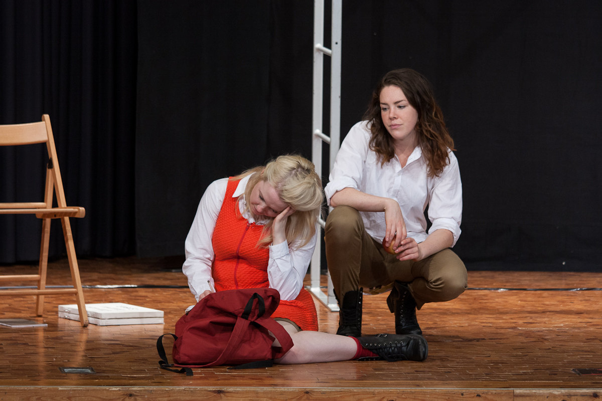 Das zuerst vorgestellte Stück „A Pinch of Salt“, welches sich die fünften und sechsten Klassen ansehen durften, begann mit einem großen Gelächter seitens der Schüler, da ein männlicher Schauspieler eine Königstocher darstellte und – wie man durch Geflüster mancher Schüler erfuhr – eine starke Ähnlichkeit zu Conchita Wurst erkennbar war. In der Geschichte ging es um Cordelia, die Tochter von König Llyr, welche aus dem Schloss verjagt worden war, da der Vater ihr unterstellt hatte, dass sie ihren Vater nicht lieben würde. So zog sie wie einst Schneewittchen mit alter Kleidung durch Dörfer und suchte nach einer Arbeitsstelle, die sie letztendlich in dem Restaurant von Mrs Sourdough fand. An der Seite ihrer neuen Arbeitskollegin Letty Lummox wurde sie nun anonym unter dem Namen Pat Flatcap
