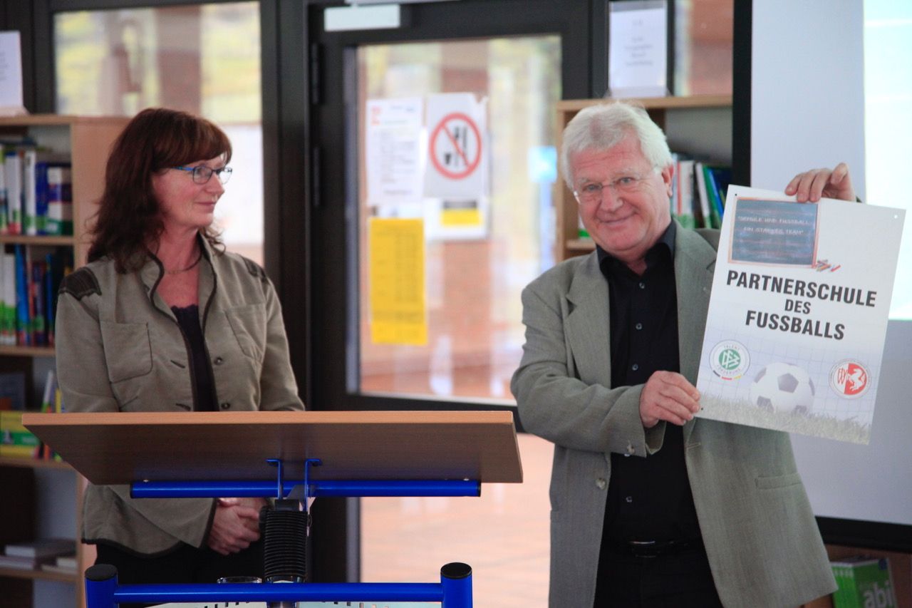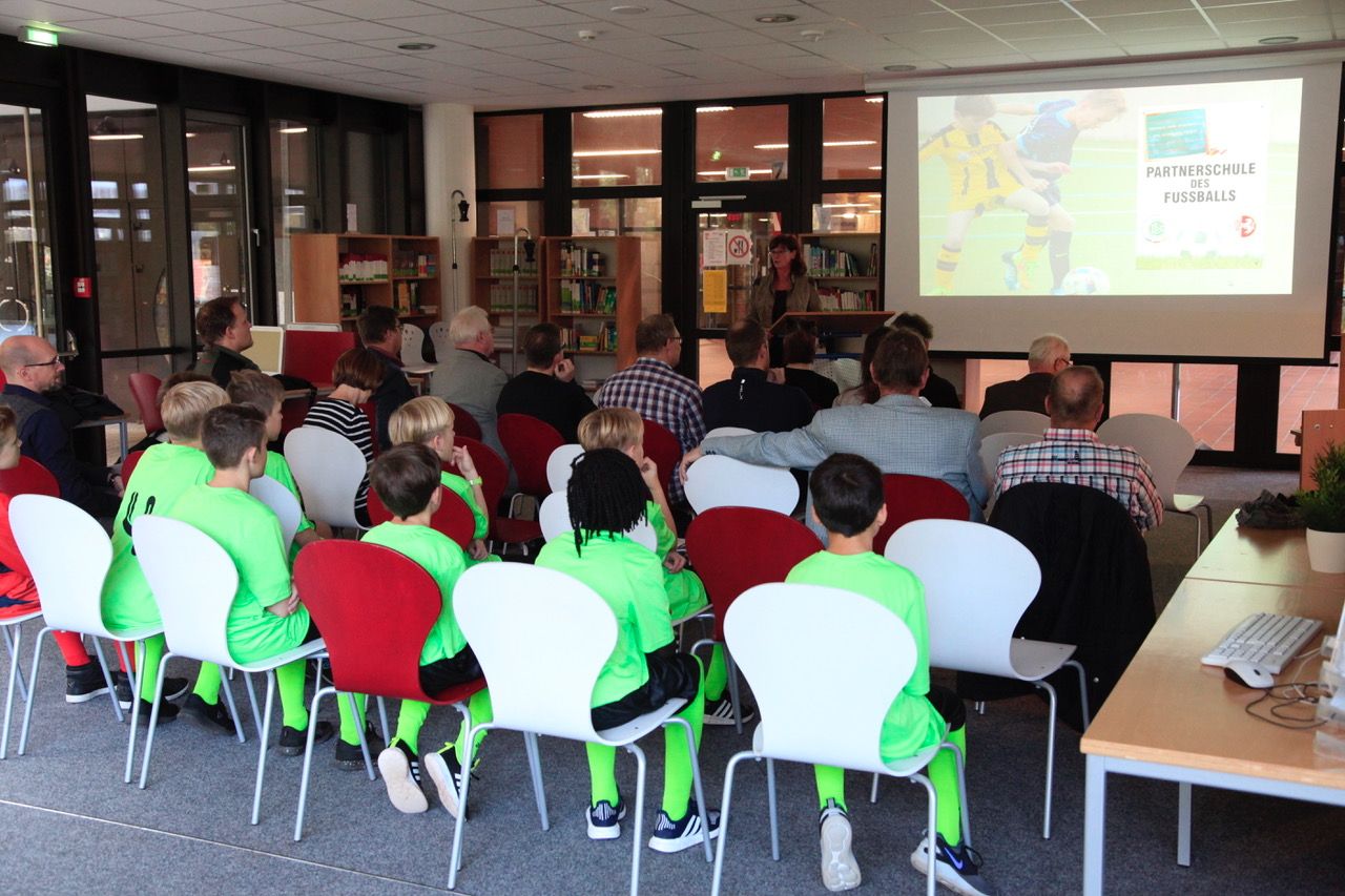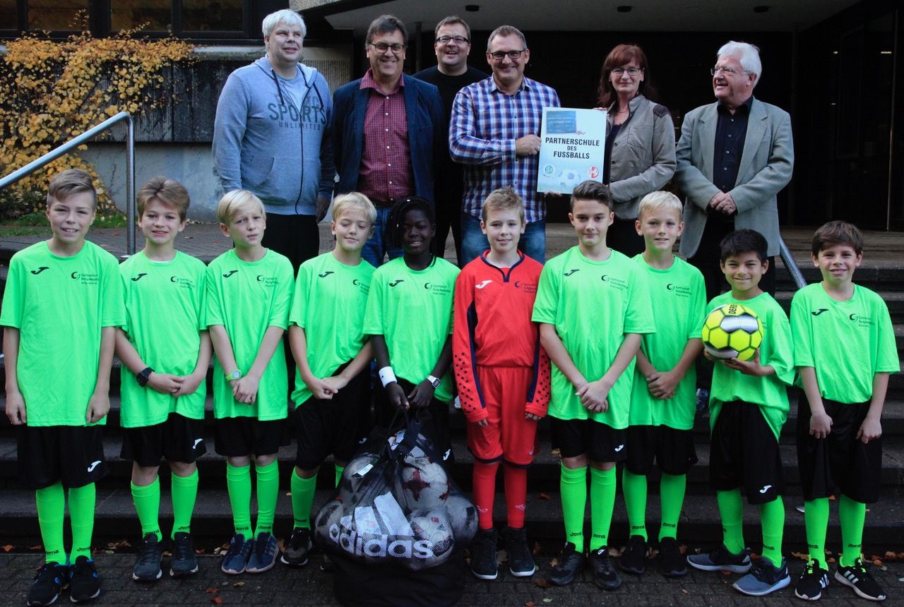 Jetzt ist es offiziell: Unser Gymnasium ist Partnerschule des Fußballs. Ab sofort werden Talente der Klassen 5 und 6 und im späteren Verlauf auch die der Klassen 7 und 8 in einer Extra-Trainingseinheit nach den Richtlinien des DFB fußballerisch gefördert.