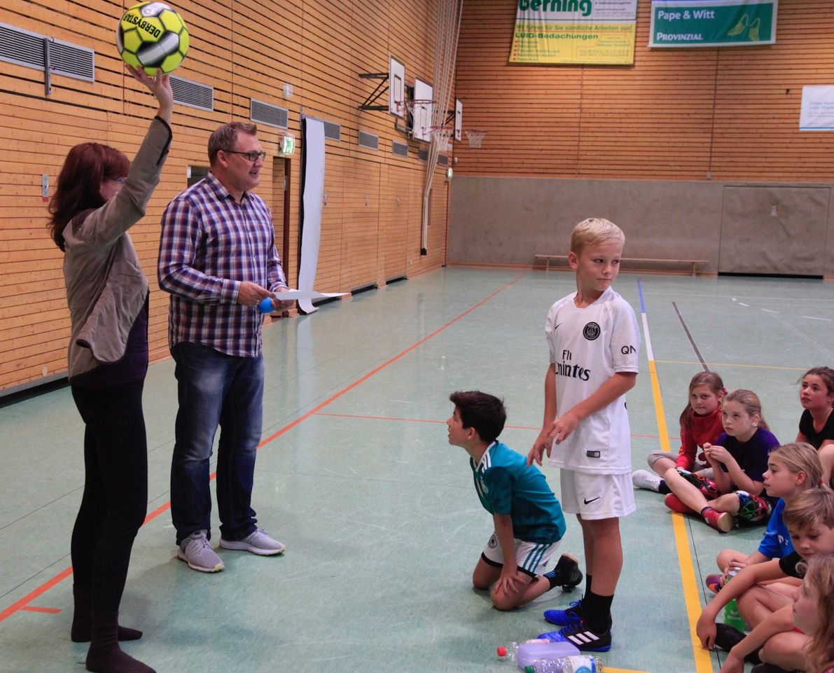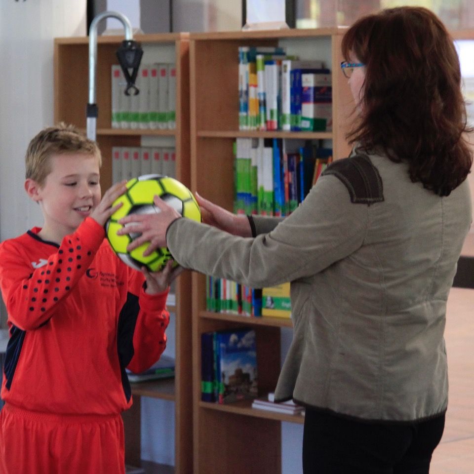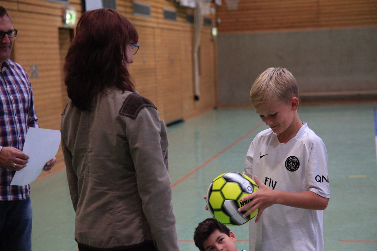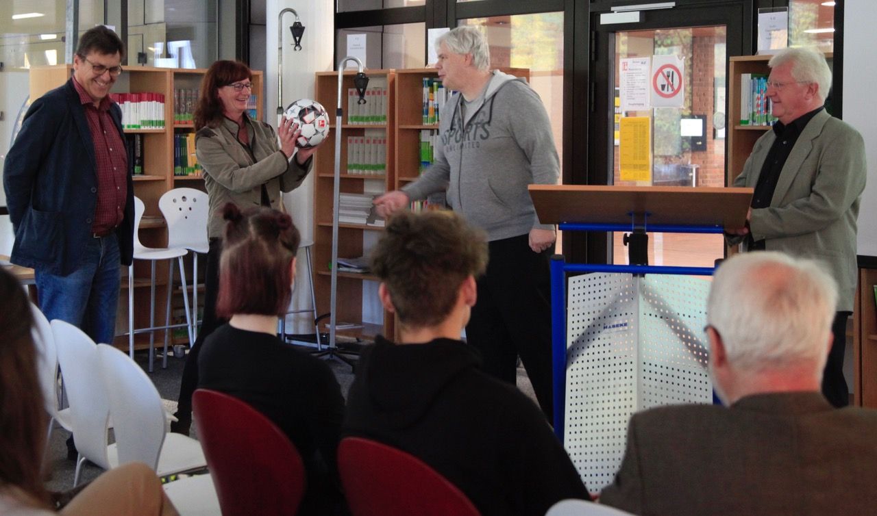 Abgerundet wurde die Feierstunde mit einem kleinen Buffett und einem Fußballturnier der Jahrgangsstufe 5 in der Sporthalle, welches die Klasse 5b für sich entschied und als ersten Preis einen von der Sparkasse gesponsorten Fußball für die Klasse erhielt.