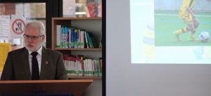 „Heute gibt es in Westfalen über 80 Partnerschulen des Fußballs“, erklärte Volker Antczak, der auch darauf hinwies, dass durch diese Kooperation die Schule ihr Profil schärft und ein Alleinstellungsmerkmal innehat. Der Verband unterstützt bei Trainingsinhalten und Trainingsgestaltung, Materialausstattung und durch eine einmal im Jahr stattfindende Fortbildung in der Sportschule Kaiserau. Das Gymnasium selbst zeigt sich für die Organisation des Trainings und der Sportstätte verantwortlich und sichtet die Talente, die gefördert werden sollen. Letztendlich gäbe es nur Gewinner: Die Vereine, die nicht nur ihre Talente gefördert bekommen, sondern auch von der möglichen Ausbildung zu Junior Coaches profitieren können; der Verband, weil praktisch kein Talent unentdeckt bleibt; die Schule durch ihr Alleinstellungsmerkmal und die Profilschärfung; die Kinder und Jugendlichen, die eine zusätzliche Trainingseinheit mit individueller Förderung erhalten. Und auch die Stadt Porta Westfalica, an deren Schulstandort nun eine Partnerschule des Fußballs existiere.